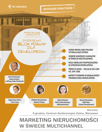 SPOTKANIE PRAKTYKÓW PRAKTYCZNE WARSZTATY NOWE MEDIA JAKO PALIWO STYMULUJĄCE RYNEK DOBÓR NARZĘDZI I KANAŁÓW W ŚWIECIE MULTICHANNEL ROLA OBSŁUGI POSPRZEDAŻNEJ W STRATEGII DEWELOPERA PRINT IS DEAD – RELACJA ON-LINE VS. OFF-LINE ASPEKTY PRAWNE W DZIAŁALNOŚCI PROMOCYJNEJ DEWELOPERA Artur Piechocki, radca prawny w APLaw Artur Piechocki Kowalski Zenon PHZ Agnieszka Adam, Terra Casa Elżbieta Brodowska, Matexi Polska Marta Bosiak, FKA Furtek Komosa Aleksandrowicz Roma Peczyńska, RED Real Estate Development Warsztaty 9 grudnia, Centrum Konferencyjne Zielna, Warszawa PRAKTYCZNE WARSZTATY KOMUNIKACJA MARKETINGOWA inwestycji w dobie marketingu wielu kanałów stanowi ogromne wyzwanie dla deweloperów i pośredników w obrocie nieruchomościami. Siła mediów społecznościowych i rosnąca skłonność klientów do dzielenia się swoimi opiniami w Internecie, modyfikuje strategie promowania nieruchomości. W trakcie warsztatów omówimy kluczowe obszary kampanii marketingowych, które pomogą osiągnąć komercyjny sukces inwestycji. W przypadku promocji nieruchomości kwestie prawne wciąż pozostają strategicznym elementem, dlatego też przygotowaliśmy dla Państwa BLOK PRAWNY, podczas którego omówione zostaną zagadnienia związane z regulacjami dotyczącymi reklamy zewnętrznej oraz elektronicznego przetwarzania danych. Wśród prelegentów przedstawiciele firm deweloperskich: RED Real Estate Development, Matexi Polska, Terra Casa oraz kancelarii prawnych: FKA Furtek Komosa Aleksandrowicz i APLaw Artur Piechocki. W PROGRAMIE M.IN.: Dobór kanałów i narzędzi marketingowych w dobie wielu ekranów Ale to już było! – czyli jak tworzyć wartość dodaną dla klientów Nieruchomość jako produkt w świecie wirtualnym Prawne regulacje reklamy zewnętrznej Social media w procesie promocji inwestycji Obsługa posprzedażowa i jej rola w marketingu szeptanym Serdecznie zapraszam do udziału, Marta Pawlikowska /Project Manager/[email protected] kom. 519 047 625 PRAKTYCZNE WARSZTATY Data:09/12/2015 9:30 Poranna kawa i rejestracja uczestników 10:00 Rozpoczęcie warsztatów 10.00 JAK PRZEŁOŻYĆ PARAMETRY INWESTYCJI NA DOBÓR KANAŁÓW I NARZĘDZI MARKETINGOWYCH • • • • • Segmentacja demograficzna i psychograficzna – jak właściwie określić grupę docelową Motywacje potencjalnych klientów jako determinanta strategii marketingowej Przekaz racjonalny czy emocje – co i kiedy lepiej działa Aspekt psychologiczny w przekazie kampanii marketingowej Parking gratis, wykończenie w cenie – to już nie działa; jak tworzyć wartość dodaną w oczach klientów Elżbieta Brodowska, Sales & Marketing Manager, Matexi Polska Nowe media jako paliwo nakręcające rynek 11.00 DIGITAL MARKETING, CZYLI JAK REKLAMA INTERNETOWA SKRACA PROCES DECYZYJNY • • • • Nieruchomość jako produkt w wirtualnym świecie Jak dotrzeć i aktywizować potencjalnych klientów w Internecie Print is dead? Relacja online – offline Dlaczego email marketing ma tak duże znaczenie w komunikacji z potencjalnymi nabywcami i jak to robić właściwie Roma Peczyńska, Dyrektor E-marketingu, RED Real Estate Development 12.00 12.15 PRAWNE REGULACJE REKLAMY ZEWNĘTRZNEJ, W SZCZEGÓLNOŚCI W ŚWIETLE USTAWY KRAJOBRAZOWEJ • • Przegląd zmian wprowadzonych w drodze ustawy krajobrazowej wraz z analizą ich wpływu na reklamodawców Nowe uprawnienia samorządów w kształtowaniu reklamy zewnętrznej („kodeksy reklamowe”, opłaty, audyty krajobrazowe) Marta Bosiak, prawnik w Departamencie Prawa Nieruchomości, FKA Furtek Komosa Aleksandrowicz 13.15 14.00 ,, ,,PANU JUŻ DZIĘKUJEMY - ROLA OBSŁUGI POSPRZEDAŻOWEJ I JEJ WPŁYW NA EFEKTYWNOŚĆ MARKETINGU SZEPTANEGO) • • Dlaczego proces posprzedażowy ma tak ogromne znaczenie przy sprzedaży mieszkań Jak zapewnić najwyższy poziom obsługi posprzedażnej Agnieszka Adam, Legal Counsel, Terra Casa PRAKTYCZNE WARSZTATY Data:09/12/2015 14.45 • • SIŁA SOCIAL MEDIA W PROCESIE PROMOCYJNYM INWESTYCJI 15.30 POZYSKIWANIE I PRZETWARZANIE DANYCH OSOBOWYCH POTENCJALNYCH KLIENTÓW DLA CELÓW MARKETINGOWYCH NA RYNKU NIERUCHOMOŚCI, SZCZEGÓLNIE ZA POMOCĄ ELEKTRONICZNYCH ŚRODKÓW PRZETWARZANIA INFORMACJI • • • • • Wizerunek dewelopera i jego wpływ na proces decyzyjny Nowoczesne metody kreowania wizerunku w mediach społecznościowych Jak radzić sobie z negatywnymi opiniami/ monitoring marki Kiedy zaliczamy do danych osobowych informacje na temat klientów zainteresowanych nabyciem nieruchomości? Czy zawsze deweloper będzie administratorem danych osobowych? Podstawy i zasady przetwarzania danych osobowych właścicieli i nabywców Marketing bezpośredni dewelopera a informacja handlowa przesyłana pocztą elektroniczną Obowiązki przedsiębiorcy związane z systemami elektronicznego przetwarzania danych i kary za ich nieprzestrzeganie Artur Piechocki, radca prawny, APLaw Artur Piechocki 16.15 Zakończenie warsztatów i wręczenie certyfikatów Jesteśmy niezależnym organizatorem wydarzeń dedykowanych dla biznesu. Wchodząc w skład grupy Trio Management, korzystamy z wieloletniego doświadczenia naszego partnera w obszarze wspierania rozwoju i poprawy efektywności organizacji. PRELEGENCI AGNIESZKA ADAM - DYREKTOR ZARZĄDZAJĄCY I RADCA PRAWNY, TERRA CASA Prowadzi warszawski oddział firmy deweloperskiej Terra Casa S.A. Zarządza procesem deweloperskim i działem sprzedaży oraz pozyskuje nowe projekty, kreuje ich wizerunek i wprowadza na rynek. Jest aktywnym członkiem Urban Land Institute. Agnieszka Adam zdobyła doświadczenie pracując m.in. w agencji reklamowej Opus B oraz w kancelarii Wardyński i Wspólnicy, gdzie współpracowała z międzynarodowymi klientami i wiodącymi globalnymi markami. Prowadzi wystąpienia na wydarzeniach organizowanych dla branży nieruchomościowej na temat ustawy deweloperskiej, standardów w marketingu i sprzedaży projektów deweloperskich. MARTA BOSIAK - PRAWNIK W DEPARTAMENCIE PRAWA NIERUCHOMOŚCI, FK