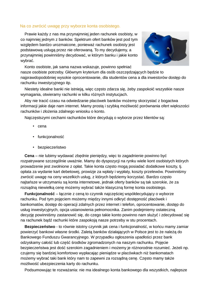 Na co zwrócić uwagę przy wyborze konta osobistego.
