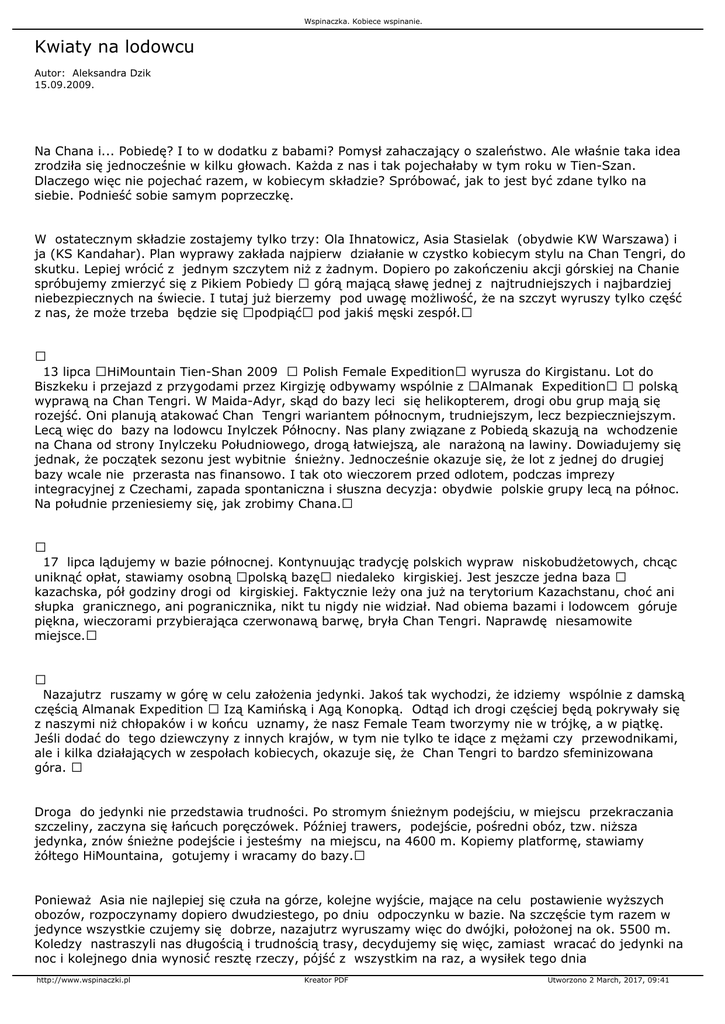ja (KS Kandahar). Plan wyprawy zakłada najpierw działanie w czystko kobiecym stylu na Chan Tengri, do