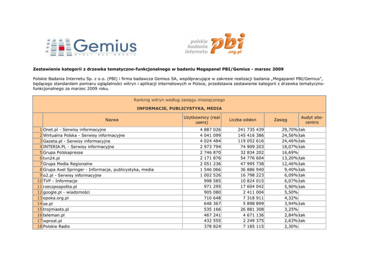 Ranking witryn według zasięgu miesięcznego INFORMACJE