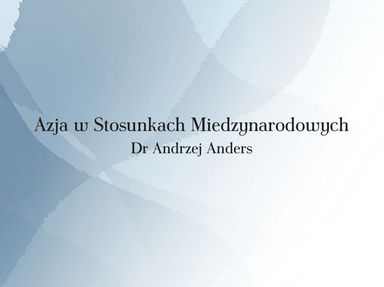 Azja w Stosunkach Miedzynarodowych Dr Andrzej Anders Azja w Stosunkach Miedzynarodowych ● Literatura do zajęć: – Krzysztof Gawlikowski, Małgorzata Ławacz (red) Azja Wschodnia na przełomie XX i XXI wieku, Warszawa 2004 – Donald E. Weatherbee International Relations in Southeast Asia. Nowy Jork, Oksford, Toronto 2005 – Edward Haliżak Polityka i strategia Chin w kształtowaniu międzynarodowego bezpieczeństwa, Warszawa 2007 – Łukasz Fijałkowski Regionalny wymiar bezpieczeństwa w Azji Południowo-Wschodniej. Normy – instytucje – ład regionalny, Wrocław 2010 Region Azji Wschodniej ● ● Azja wschodnia obejmuje obszar tradycyjnie nazywany „Dalekim Wschodem” Składa się z dwóch podstawowych subregionów: – Azji Północno - Wschodniej (Chiny, Japonia, Korea Pn i Pd) – Azji – Południowo-Wschodniej (Wietnam, Laos, Kambodża, Myanmar, Tajlandia, Ma lezja, Singapur, Indonezja, Brunei, Filipiny, Timor Wschodni) Uwarunkowania historyczne ● Własne tradycje polityczne i kulturowe państw regionu ● Okres kolonizacji ● II wojna światowa i okupacja japońska ● Okres walki o niepodległość, ekspansja komunizmu ● Zimna wojna ● Rywalizacja sino – radziecka ● Przemiany po 1989r. Geopolityka regionu ● Pozycja Chińskiej Republiki Ludowej – Reformy gospodarcze po 1978r. – Konflikty terytorialne – Odbudowa pozycji Chin na arenie międzynarodowej. – Problemy wewnętrzne: ● ● Spójność społeczna Tendencje separatystyczne w Tybecie i Xinjang ChRL ● ● ● ● 1946 – 1949 – Wojna Domowa (III Wojna Domowa) w Chinach 1 X 1949 – Proklamowanie Chińskiej Republiki Ludowej Podstawy ustrojowe to przyjęty w IX 1949 Wspólny Program Ludowej Politycznej Rady Konsultatywnej Chin Konstytucje w latach 1954, 1975, 1978 i 1982 Reformy Gospodarcze w ChRL ● ● ● ● ● ● 1976 – 1978 walki wewnątrz KPCh – Reformatorzy kontra zwolennicy linii Mao 1978 zwycięstwo Deng Xiaopinga Proces „Bandy Czworga” m.in. Jiang Qing – wdowy po Mao 1982 – XII zjazd KPCh – potępienie linii Mao – wprowadzanie elementów gospodarki kapitalistycznej Lata 1980te – reformy wewnętrzne 1989 – kulminacja konfliktu pomiędzy reformatorami a „betonem” Przemiany w ChRL ● 1979 – uchwalenie Kodeksu Karnego ChRL (pierwszy w historii Chin) ● 1983 – Kodeks Cywilny ● Reformy 1980-83: ● ● – likwidacja komun wiejskich – Zezwolenie na działalność firm rodzinnych na wsi (w miastach od 1984r) – Koniec represji wobec religii – Odejście od maoizmu, powrót do konfucjanizmu – eksperymentalne „Specjalne Strefy Ekonomiczne” 1985 eksperymentalne demokratyczne wybory o Rad Wiejskich Od 2003 do KPCh mogą należeć biznesmeni Chińskie roszczenia terytorialne Kaszmir Wyspy Senkaku/ Diaoyutai Morze Południowochińskie Odbudowa pozycji Chin na arenie międzynarodowej ● Rozbudowa armii ● Rozbudowa floty wojennej ● Program kosmiczny ● Akcje propagandowe: – Instytuty Konfucjusza – Igrzyska Olimpijskie – EXPO 2010 w Szanghaju Morski szlak handlowy Rurociągi Azji Centralnej Rozbudowa armii i floty Niszczyciel typu 052C Czołg typu 99 Shenyang J-11 Program kosmiczny Program kosmiczny ● ● ● ● ● ● ChRL od 1956r. posiadają program kosmiczny. Od 1960r. Jest to program samodzielny oparty o rakiety nośne serii Chang Zheng (Długi Marsz). W 1970r. ChRL wystrzeliła swojego pierwszego satelitę 1992 – uruchomienie programu Shenzhou – programu lotów załogowych 15 – 16 X 2003 – pierwszy lot załogowy chińskiego statku (Shenzhou V) Chińscy astronauci nazywani są taikonautami Start misji Shenzhou V Start statku Shenzhou 7 Tiangong 1 ● Stacja kosmiczna Tiangong 1 (Boski pokój) ma zostać umieszczona na orbicie w początkach 2011r. Chińskie problemy ● Przeludnienie ● Polaryzacja społeczna ● Korupcja ● Problemy ekologiczne Przeludnienie ● Problemy z wyżywieniem ● Problemy z pracą ● Brak dziewczynek ● Problemy mieszkaniowe ● Zanieczyszczenie Zanieczyszczenie środowiska ● ● ● ● 45% głównych rzek Chin jest zanieczyszczonych – nie nadają się do picia, czy czasami nawet do nawadniania Problemy zdrowotne – 100mln $ kosztów rocznie 460tys mieszkańców umiera przedwcześnie Środowisko lub wzrost – często wybierane jest to drugie Korupcja ● ● Ze względu na polaryzację społeczną dla wielu Chińczyków jedyną szansą na znalezienie pracy, mieszkania itp. są koneksja (guanxi) co oznacza wszechobecną korupcję Nadużycia władzy oznaczają dziesiątki protestów w chinach Stabilność społeczna ● Separatyzm Tybetański i Ujgurski ● Protesty ekonomiczne