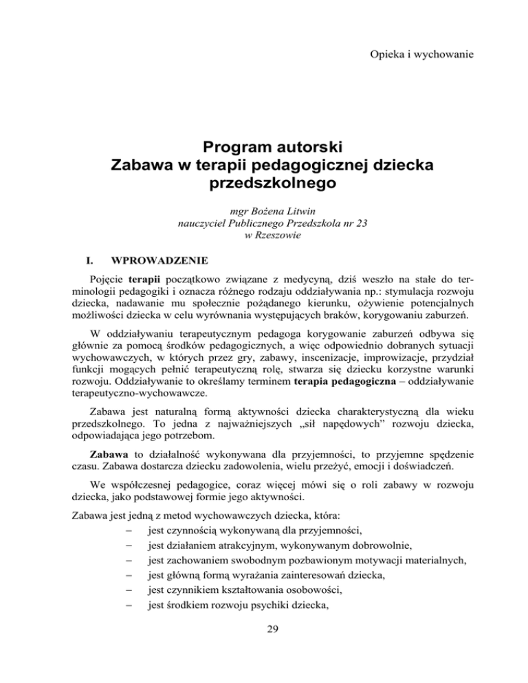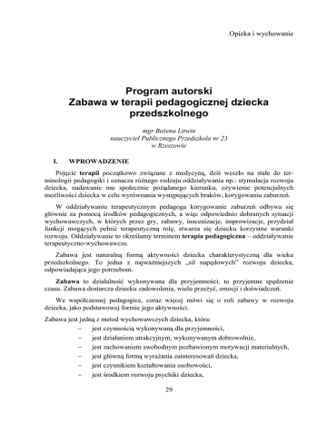 Program autorski Zabawa w terapii pedagogicznej dziecka