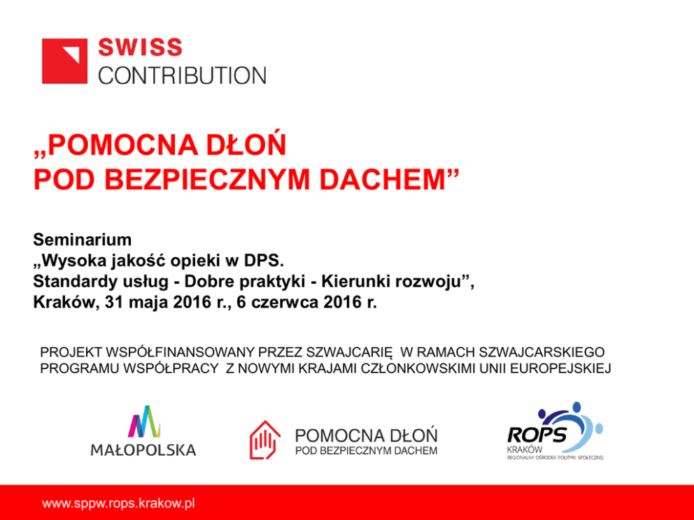 „POMOCNA DŁOŃ POD BEZPIECZNYM DACHEM” Seminarium „Wysoka jakość opieki w DPS. Standardy usług - Dobre praktyki - Kierunki rozwoju”, Kraków, 31 maja 2016 r., 6 czerwca 2016 r. PROJEKT WSPÓŁFINANSOWANY PRZEZ SZWAJCARIĘ W RAMACH SZWAJCARSKIEGO PROGRAMU WSPÓŁPRACY Z NOWYMI KRAJAMI CZŁONKOWSKIMI UNII EUROPEJSKIEJ www.sppw.rops.krakow.pl Podmiotowość mieszkańców domów pomocy społecznej - aspekty etyczne Dr hab. Małgorzata Duda, prof. UPJPII Uniwersytet Papieski Jana Pawła II w Krakowie PROJEKT WSPÓŁFINANSOWANY PRZEZ SZWAJCARIĘ W RAMACH SZWAJCARSKIEGO PROGRAMU WSPÓŁPRACY Z NOWYMI KRAJAMI CZŁONKOWSKIMI UNII EUROPEJSKIEJ www.sppw.rops.krakow.pl Odkrycie na nowo godności ludzkiej i promocja podmiotowości każdego człowieka stały się reakcją na systemowe niszczenie tej podmiotowości przez dotychczasowe totalitaryzmy: nazistowski i komunistyczny. Powrót do wrodzonej człowiekowi godności ludzkiej i wynikłej z tego równości wszystkich ludzi nastąpił w Deklaracji Praw Człowieka ONZ w 1948. Tym samym dała podstawy do wpisania godności i podmiotowości w szereg różnych deklaracji i rezolucji na świecie. W tym duchu – szacunku dla ludzkiej godności i podmiotowości – zaczęto podchodzić do każdego, zwłaszcza osoby zależnej, tworząc przestrzeń wsparcia oraz partnerstwa – pamiętając o osobowym traktowaniu każdego www.sppw.rops.krakow.pl Podmiotowość: -to coś, co jest człowiekowi dane (Ślipko, 1999), -To świadome działanie osoby dążącej do samorealizacji (Bruhlmeier, 1994), -to stan subiektywnej proporcji do własnych czynów, -to stan mentalny wynikający ze świadomego dążenia do osiągnięcia celów (CzerpeniakWalczak, 1994), - to podstawowa cecha osoby ludzkiej świadomej swoich czynów, obdarzonej rozumem i wolną wolą Na gruncie antropologii filozoficznej, człowiek postrzegany jest jako byt osobowy, posiadajacy takie właściwości, jak np. zdolność do poznania, do miłości, wolności, podmiotowości, godności. Właściwości te, powiązane są z intelektem, określają obszar odpowiedzialności i własnych wyborów. Człowiek, jako istota społeczna, zależny jest od społeczności, w której istnieje i rozwija się, natomiast w ujęciu ontologicznym jest niepodzielną strukturą i góruje ponad społecznością. Człowiekowi, jako osobie, bezwzględnie przysługuje godność i podmiotowość; jest on podmiotem, a nie przedmiotem praw. www.sppw.rops.krakow.pl Z terminem „podmiotowość” łączą się takie cechy ludzkie, jak: „suwerenność bytowa, świadomość, celowość działania, indywidualna autonomiczność, skłonność do opierania się na własnych przekonaniach i poczuciu moralnym, samodzielność w urzeczywistnianiu wartości, autoteliczność, wolność w łączeniu się ze wspólnotą” (Kołodziejska, 2001). Podmiotowość ma subiektywny charakter – tylko sam podmiot jest w stanie określić, czy podmiotem jest, czy też nie. Podmiot to osoba, która jest świadoma, jak kształtuje się rzeczywistość, jaka jest jego indywidualność i związek pomiędzy tymi światami (Korzeniowski, 1983). Istotnym pojęciem, nierozerwalnie związanym z podmiotowością jest godność osoby ludzkiej. GODNOŚĆ TO POCZUCIE WŁASNEJ WARTOŚCI www.sppw.rops.krakow.pl Podstawowym aktem normatywnym w polskim prawodawstwie jest art. 30 Konstytucji Polskiej Rzeczypospolitej , gdzie godność jest rozumiana jako przyrodzone, niezbywalne i nienaruszalne źródło wolności i praw człowieka i obywatela. Jako konstytucyjna wartość nie może być ograniczona i tym samym jest jedną z klauzul generalnych, stanowiących podstawę do interpretacji całego systemu prawnego. Karta Praw Podstawowych Unii Europejskiej, w rozdziale I (pt. Godność) wymienia prawo do życia, prawo do integralności cielesnej… zakazuje ludzkiego bądź poniżającego traktowania, karania, niewolnictwa oraz pracy przymusowej (A. Kulik). Podstawowe źródło nauczania chrześcijan o godności osoby ludzkiej znajduje swe zakorzenienie w prawdzie o pochodzeniu człowieka i jego podobieństwie do Stwórcy. Człowiek, od samego początku, jest wolny, posiada zdolność poznania samego siebie. W scenie biblijnej, w której nadaje imiona zwierzętom, uświadamia sobie swoją odrębność, a zarazem nadrzędność w stosunku do innych istot. Tym samym pozostaje podmiotem. www.sppw.rops.krakow.pl Tymczasem… Godność człowieka jest zagadnieniem przede wszystkim etycznym. Zagadnienie sensu życia pozostaje w ścisłym związku z zagadnieniem bytu ludzkiego. Każde życie ludzkie ma sens i jest potrzebne, od samego poczęcia aż do naturalnej śmierci. Szacunek należny drugiemu człowiekowi jest powinnością moralną. Zasady moralne są kojarzone często z nauką Kościoła, jednak olbrzymia ich ilość jest pochodzenia naturalnego, człowiek uświadamia je sobie rozumem. Człowiek jest istotą społeczną i żyje w społeczności. Przestrzeganie zasad etycznych gwarantuje ludzką formację, a stosunki interpersonalne są wtedy godne człowieka, który powinien emanować człowieczeństwem. Człowiek, wprawdzie, nie może odebrać człowiekowi godności, ale przez swoje nieetyczne zachowanie, nietolerancję czy dyskryminację, może zmniejszyć w drugim poczucie osobowej godności. www.sppw.rops.krakow.pl Ojciec Święty Jan Paweł II, w Liście do osób w podeszłym wieku pisze: „Jeśli spróbujemy przyjrzeć się obecnej sytuacji, przekonamy się, że w niektórych społeczeństwach starość jest ceniona i poważana, w innych zaś cieszy się znacznie mniejszym szacunkiem, ponieważ panująca tam mentalność stawia na pierwszym miejscu doraźną wydajność człowieka. Pod wpływem tej postawy tak zwany trzeci lub czwarty wiek jest często lekceważony, a sami ludzie starsi muszą zadawać sobie pytanie, czy ich życie jest jeszcze użyteczne”. Tymczasem … O godności człowieka nie stanowi to, co "ma", lecz to, że "jest" człowieki
