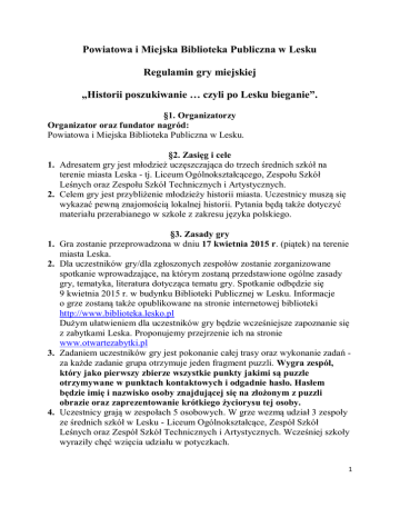 Powiatowa i Miejska Biblioteka Publiczna w Lesku Regulamin gry