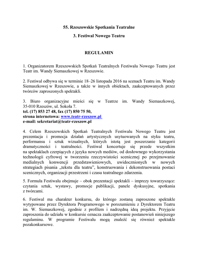 Regulamin festiwalu 2016 - Teatr im. Wandy Siemaszkowej w