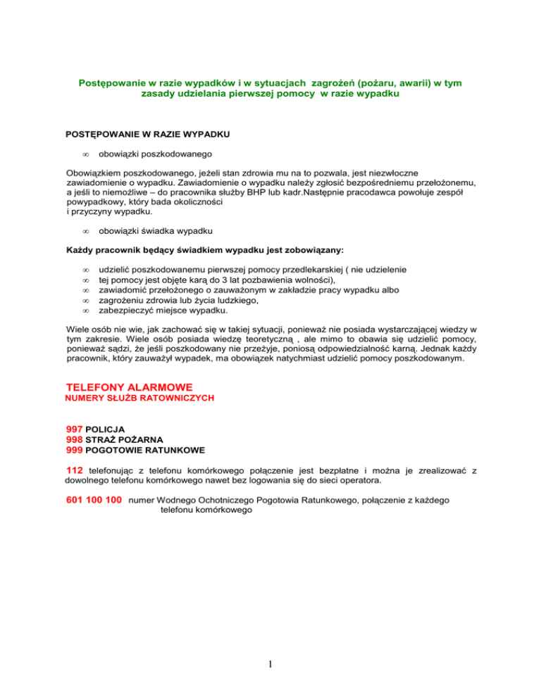 Postępowanie w razie wypadków i w sytuacjach zagrożeń