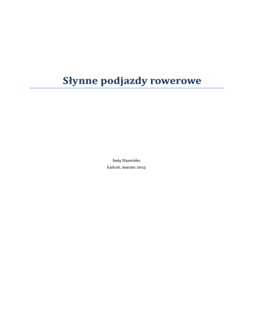 Słynne podjazdy rowerowe Imię Nazwisko Łańcut, marzec 2015 Spis treści Spis treści .......................................................................................................................... 2 Francja .............................................................................................................................. 3 Col de l'Iseran................................................................................................................ 3 Col du Galibier .............................................................................................................. 4 Col de la Madeleine ....................................................................................................... 5 Mont Ventoux................................................................................................................ 6 Col du Tourmalet .......................................................................................................... 8 L'Alpe d'Huez ................................................................................................................ 8 Włochy ............................................................................................................................ 10 Passo dello Stelvio ....................................................................................................... 10 Passo di Gavia .............................................................................................................. 11 Monte Zoncolan ...........................................................................................................12 Inne ..................................................................................................................................14 Alto del Angliru (Hiszpania) ........................................................................................14 Trollstigen (Norwegia) ................................................................................................. 15 Grossglockner Hochalpenstrasse (Austria) ................................................................. 15 Szosa Transfogaraska (Rumunia) ................................................................................16 Wielka Przełęcz Świętego Bernarda (Col du Grand Saint Bernard - Szwajcaria) ........ 17 Profile.............................................................................................................................. 18 Fotografie .........................................................................................................................19 2 Francja Col de l'Iseran Col de l'Iseran (2770 m n.p.m.) – przełęcz w Alpach Graickich, we Francji. Oddziela grupę górską Vanoise (na zachodzie) od Alp Graickich (na wschodzie), stanowiąc jednocześnie połączenie między źródłowymi odcinkami dolin rzek: Isère na północy i Arc na południu. Przełęcz stanowi używane od dawna przejście z regionu Tarentaise w dolinie Isère do regionu Haute Maurienne w dolinie Arc. W 1937 r. Prezydent Republiki Albert Lebrun uroczyście otworzył drogę przez przełęcz Iseran (dziś droga D 902 z Bourg-Saint-Maurice do Lanslebourg-Mont-Cenis). Przejazd nią stał się szybko jedną z głośnych atrakcji turystycznych w tej części Alp i celem wielu automobilistów. Stanowi ona najwyższy punkt wielkiej trasy turystycznej, wiodącej wzdłuż najpiękniejszych pasm Alp Francuskich, tzw. (franc.) Route des Grandes Alpes. Tuż pod siodłem przełęczy wznosi się przysadzista, wybudowana z kamienia w 1939 r. kaplica pod wezwaniem Notre Dame-de-l'Iseran. Profil 1 Profil Col de l'Iseran Do chwili obecnej Col de l'Iseran to najwyżej położona przełęcz drogowa we Francji i w całych Alpach, przez którą wiedzie publiczna droga o nawierzchni bitumicznej. Jest wprawdzie w Alpach wiele wyżej poprowadzonych dróg, są to jednak drogi bite lub niepubliczne. Jest także wyżej poprowadzona droga asfaltowa na stokach Col de la Bonette 3 Francja (2860 m n.p.m.) w grupie górskiej Mercantour w Alpach Nadmorskich, jednak jej najwyższy punkt (2802 m n.p.m.) nie wypada na przełęczy. Droga przez Col de l'Iseran jest otwarta od początku czerwca do września, jednak praktycznie przez cały rok na jej poboczach leżą pryzmy śniegu. Podziwianiu widoków (ograniczonych zresztą tylko do najbliższych szczytów) przeszkadza tu też zwykle wiejący porywisty, zimny wiatr z północy. Dobre punkty widokowe znajdują się nieco poniżej przełęczy, po obu jej stronach: Belvédère de la Tarentaise (2528 m n.p.m.) po stronie północnej oraz Belvédère de la Maurienne (2503 m n.p.m.) po stronie południowej. Col du Galibier Przez przełęcz Galibier prowadzi ważna komunikacyjnie droga nr 902 z Saint-Michel-deMaurienne w dolinie Arc przez przełęcz Télégraphe i miejscowość Valloire na przełęcz Lautaret, gdzie łączy się z drogą nr 91 Vizille - Briançon. Profil 2 Profil Col du Galibier Pierwotny przebieg drogi na południowym stoku przełęczy Galibier, opadającym ku dolinie Guisane, był zdecydowanie odmienny od obecnego. Odgałęziała się ona od drogi z Briançon na wysokości 1970 m n.p.m., ok. 2 km przed przełęczą Lautaret i ciasnymi zakosami wiodła w górę ponad dolinką niewielkiego potoku, pokonując na długości 6 km aż 586 m różnicy wzniesień. Dzisiejsza trasa powstała w 1947, kiedy to przebudowano znaczne odcinki drogi nr 91 Briançon - przełęcz Lautaret, wyposażając je w osłony przeciwlawinowe. Należy 4 Francja również zaznaczyć, że pierwotnie szosa nie wspinała się na samo siodło przełęczy, przedostając się na drugą stronę grzbietu wydrążonym na wysokości 2556 m n.p.m. tunelem długości 370 m. Z uwagi na konieczność remontu tunelu w 1976 oddano do użytku odcinek drogi, omijający tunel i pokonujący grzbiet kilkoma wąskimi zakosami na stromych stokach (po ok. 1 km z każdej strony tunelu). Od 2002 można wybierać jedną z dwóch dróg 