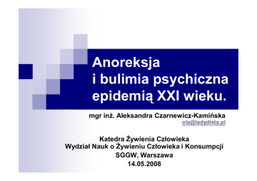 Anoreksja i bulimia psychiczna epidemią XXI wieku.