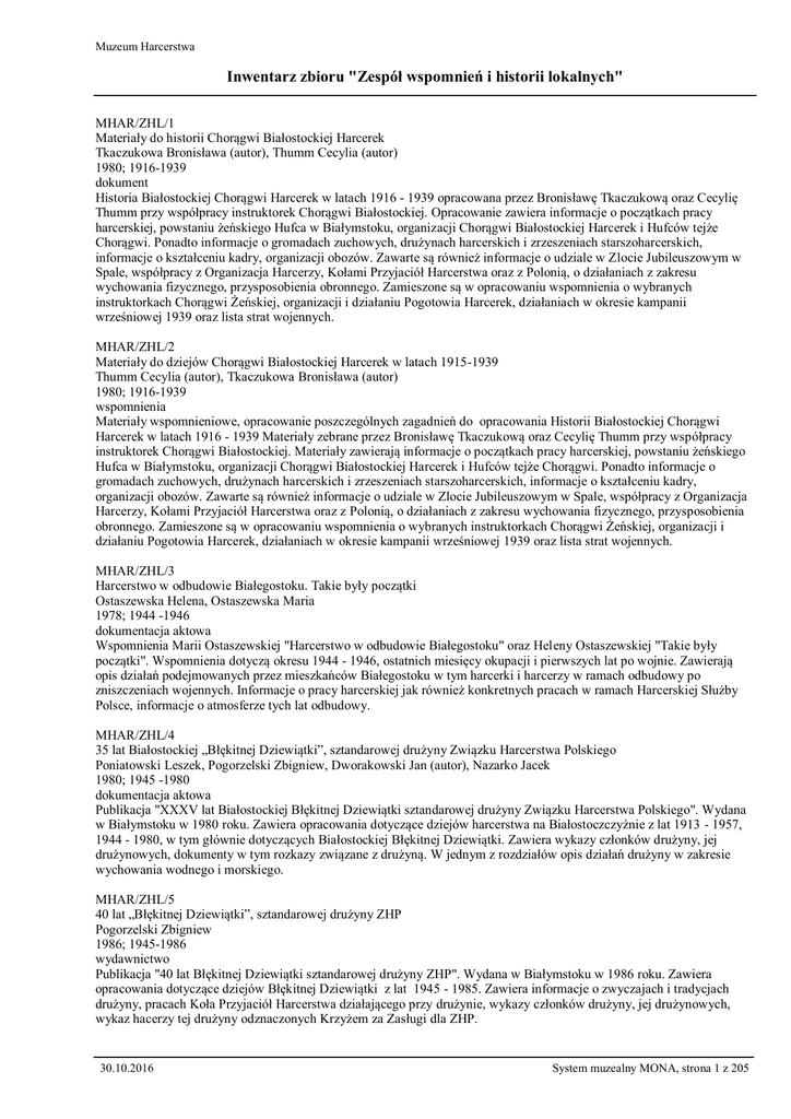 Inwentarz zbioru "Zespół wspomnień i historii lokalnych"