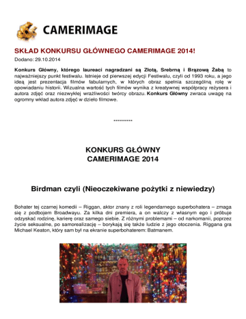 KONKURS GŁÓWNY CAMERIMAGE 2014 Birdman czyli