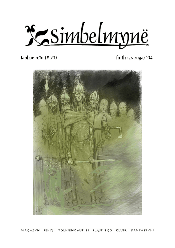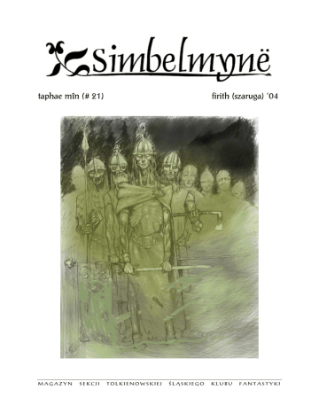 taphae mîn (# 21) MAGAZYN SEKCJI firith (szaruga) ‘04 TOLKIENOWSKIEJ ŚLĄSKIEGO KLUBU FANTASTYKI taphae mîn (# 21) MAGAZYN SEKCJI firith (szaruga) ‘04 TOLKIENOWSKIEJ ŚLĄSKIEGO KLUBU FANTASTYKI STRONA 4 Simbelmynë # 21 – SZARUGA Parmadili to nazwa Sekcji Tolkienowskiej Śląskiego Klubu Fantastyki w Katowicach, którą w latach 80-tych XX wieku założył Andrzej Kowalski (Bilbo Brandybuck) Simbelmynë czyli ‘Niezapominka‘ (II 136) to magazyn Sekcji Tolkienowskiej „Parmadili”. Prezentuje on postać i dzieło J.R.R. Tolkiena oraz dokonania ruchu tolkienowskiego w Polsce i w „Szerokim Świecie”. Pismo podejmuje problematykę tolkienowskiej epopei i propaguje wartości drogie jej autorowi. W zasięgu zainteresowań są jednak również inni pisarze fantasy, szczególnie z kręgu oksfordzkich Inklingów. taphae mîn (# 21) firith (szaruga) ‘04 Treść Kolędy w quenya - Elanor Andrzej Kowalski – Głos Dziedzica Bucklandu Głos z Moczarów Wiadomości zza Brandywiny Kuba „Athrandir” Dobranowski - Pierwsze Urodziny Forum „Elendili” J.R.R. Tolkien – Pieśń o Nimrodel - tłum. Adaneth (wiersz) Katarzyna „Elring” Staniewska - Praindoeuropejczykom (wiersz) Piotr „Neratin” Florek - Ing - tam i z powrotem Cezary Karolczak - Wędrówka pod Górę Przyjaźni Magda „Tallis” Kroczak - Notatki z... Beowulfa Dawid Widzyk - Byłem w Śródziemiu. Relacja z wyprawy do Nowej Zelandii Ryszard Derdziński i Tomasz Gubała - Byliśmy w Rivendell Tadeusz A. Olszański - „Z teki Gwaihirzęcia” - niezbędne wyjaśnienia · Gwaihirzę Tadeusz A. Olszański - Łozińskie nowinki · Gwaihirzę Tadeusz A. Olszański - Dodatek F II do Władcy Pierścieni w tłumaczeniu J. Łozińskiego · Gwaihirzę Aleksandra Jagiełowicz - Jeszcze raz o Łozińskim · Gwaihirzę Tadeusz A. Olszański (opr.) - Księga Mazarbul · Gwaihirzę Łukasz „Thoronnil” Zarzycki - Podróż w przeszłość (recenzja I polskiego wyd. Hobbita) Paweł „Angbad” Piskurewicz - Rozszerzone wydanie DVD „Powrót Króla” (recenzja) Katarzyna „Elring” Staniewska - Aerlin Rendir (wiersz w sindarinie) Thorsten Renk - Kurs języka quenejskiego - lekcja 2 - tłum. Adaneth Zagubiona opowieść (fanfik) · Gwaihirzę W kuchniach Śródziemia - potrawka z królika Errata Tolkien Zone - Strefa Humoru Halethy Summary 5 7 8 9 13 15 16 17 27 38 47 64 67 68 69 70 72 77 78 80 81 88 90 90 91 92 Ilustracje Maciej Wygnański - Armia Umarłych Małgorzata Pudlik - Liść, dzieło Niggle'a Małgorzata Pudlik - Zimowa sceneria Maciej Wygnański - Sauron i Celebrimbor Joanna „Salamistra” Petruczenko - Elbereth Maciej Wygnański - Pojedynek Fingolfina z Morgothem Maciej Wygnański - Rohir 79 Luis F. Bejarano - Armia Noldorów J.R.R. Tolkien - Górska ścieżka (*) Luis F. Bejarano - Pojedynek Fingolfina z Morgothem Karolina Stopa-Olszańska - ozdobniki z Gwaihirzęcia Ryszard Derdziński - Skok Berena Haletha i Marek Dąbrowski - humor tolkienowski Wszystkie teksty i prace drukujemy za pisemną zgodą ich autorów. (*) = Copyright © by The Tolkien Estate okładka, 3 6 8 12 14 37 45 46 65 66 72 87 91 Simbelmynë # 21 – SZARUGA STRONA CICHA NOC BÓG SIĘ RODZI... (KOLĘDA W QUENYA) (KOLĘDA W QUENYA) Quildëa ló, airë ló Ilya fuma, tira er Vórima anairë veru Raina Hína as findë cassë Fuma menelo séressë. Fuma menelo séressë. Eru nóna, vala rucë Heru menelo ná helda Nárë niquë, cálë mornata Úmetima harya rénar Nattírina alcarinqua Fírim' aran i randaron Ar Quetta né carna hrávë Ar marneryë imbë elwë. zTmR`C j~N= lE7R j~N `Bj´E eUt#= 1T7E `V6 y~N7Tt# `C5lE7R yR7U 7E`B5# 9~B5# `C8 eT2$ aE,R eUt# t$5$jY 8~V7R,ReUt# t$5$jY 8~V7R,R- `V7U 5~N5#= yEjE 7UaR 9F7U t$5$jY 5~C 9FmE 5~C7R 5%zR= a~CjR t^65#1E ~Mt$1Tt# 9D7ÍE 7~V5#6 5#1'~B7T5# `CjaE7Tv# e~B7Tt `C7E5 `B 7E2#7Y5 `C6 zR1'E 5~V aE65# ˝7~CyR `C6 t#65$7ÍR `Bw$ `VjnRkolędy na język quenya tłumaczyła Elanor na tengwar transkrybował Galadhorn 5 STRONA 6 Simbelmynë # 21 – SZARUGA Małgorzata Pudlik - Liść, dzieło Niggle'a Simbelmynë # 21 – SZARUGA STRONA GŁOS DZIEDZICA BUCKLANDU Kochani Hobbici! Złota jesień powoli przeszła w jesienną szarugę, chwilami tylko okraszoną słońcem. Góry Mgliste pokryły się pierwszym śniegiem, a my Hobbici zamknęliśmy się w norkach. Nadszedł czas pełzających w kominku płomieni, świec i lektury. Przyjaciele z Moczarów zadbali, abyśmy nie próżnowali przy kufelku piwa i placku kminkowym (coraz rzadszym niestety). Pozwoli to nam oderwać się od złych wieści ze Śródziemia, gdzie przywary Dużych Ludzi biorą górę nad Dobrem i prowadzą do odrodzenia się Zła. Niestety nasz płomień kominkowy nie ma mocy topienia Pierścieni Władzy ani oczyszczenia świata ze Zła. Wzmocnieni więc lekturą Simbelmynë ruszyć musimy w odległe zakątki Śródziemia, by Dobrem próbować Zło zwyciężać. Wasz Bilbo Brandybuck 7 STRONA 8 Simbelmynë # 21 – SZARUGA GŁ O S Z M O C Z A R Ó W Mae Govannen, Nie minął miesiąc od ostatniego numeru Simbelmynë, a my oddajemy do Waszych rąk kolejny… Tym razem zabierzemy was w daleką podróż w czasie i przestrzeni, bo przecież koniec roku to znakomity moment zarówno na chwilę refleksji o przebytej drodze, jak i na odważne spojrzenie w zwierciadło Galadrieli… I tak jeszcze raz wracamy do świata Beowulfa, a przewodnikiem po średniowiecznym eposie jest jak zwykle Tallis, która prezentuje nam pełniejszą wersję znanego już tekstu. Piękny wiersz Elring sprawia, że udajemy się w przeszłość tak odległą, że niemal mityczną, by za chwilę rzucić się w sam wir tolkienowskiego „kotła opowieści”. Neratin z kolei prezentuje znakomitą analizę siegającą daleko w głąb mitologii Śródziemia i historii Starej Europy. W znanym już ze stron Niezapominki tekście Cezarego Karolczaka o drodze zgłębimy tajemnicę przyjaźni, czegoś, w co J.R.R. Tolkien wierzył mocno przez całe swoje życie. W najprawdzi