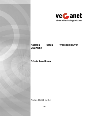 Katalog VEGANET usług Oferta handlowa Wrocław, 2012-12-13, v0.6 -1- wdrożeniowych Katalog usług wdrożeniowych VEGANET Wrocław, 2012-12-13, v0.6 Historia Wersji Data Wersja Autor Opis 13.12.2012 0.6 Tomasz Baczyński Korekta całości dokumentu. Zmiana formy na opis dla klientów. 29.05.2012 0.5 Tomasz Baczyński Opis usług korekta 09.05.2012 0.4 Tomasz Baczyński Opis usług serwisowych 30.12.2011 0.3 Marek Pipkowski Poprawki systemy dyskowe i backup 22.12.2011 0.2 Marcin Biczan Dodany OpenSource 12.12.2011 0.1 Ireneusz Lebiodzik Draft Biuro Handlowe: ul. Skoczylasa 32, 54 - 071 Wrocław e-mail: [email protected], http://www.veganet.pl tel. 71 3490 250, 71 3490 260, -2- 713490 280, serwisowych fax. 71 3490 251 Katalog usług wdrożeniowych VEGANET Wrocław, 2012-12-13, v0.6 SPIS TREŚCI SPIS TREŚCI ......................................................................................................................... 3 1. WSTĘP. .......................................................................................................................... 4 2. USŁUGI WDROŻENIOWE ............................................................................................... 4 2.1 2.2 2.3 2.4 2.5 2.6 2.7 2.8 2.9 3. PLANOWANIE I WDROŻENIE SYSTEMÓW SERWEROWYCH. ............................................................. 4 PLANOWANIE I WDROŻENIE SYSTEMÓW DYSKOWYCH I TAŚMOWYCH. ............................................... 4 PLANOWANIE CENTRÓW PRZETWARZANIA DANYCH. .................................................................... 5 BACKUP DANYCH ............................................................................................................. 6 WIRTUALIZACJA SYSTEMÓW ............................................................................................... 6 WIRTUALIZACJA STACJI ROBOCZYCH ..................................................................................... 7 WIRTUALIZACJA ZASOBÓW DYSKOWYCH ................................................................................. 7 MONITOROWANIE I ZARZĄDZANIE SYSTEMÓW IT ...................................................................... 8 OPROGRAMOWANIE OPENSOURCE ........................................................................................ 8 USŁUGI SERWISOWE .................................................................................................... 9 3.1 USŁUGI AUDYTU ............................................................................................................. 9 3.1.1 Audyt systemów bezpieczeństwa.......................................................................... 10 3.1.2 Audyt systemów pamięci masowych ..................................................................... 10 3.1.3 Audyt systemów backupu i archiwizacji ................................................................. 10 3.1.4 Audyt systemów wirtualnych ............................................................................... 11 3.2 USŁUGI PROJEKTOWE I KONSULTACYJNE .............................................................................. 12 3.3 SZKOLENIA ................................................................................................................. 12 3.4 PROGRAMY OPIEKI SERWISOWEJ ....................................................................................... 13 3.4.1 Opieka nad infrastrukturą IT – monitoring systemów.............................................. 13 3.4.2 Opieka on-line – help desk .................................................................................. 14 3.4.3 Opieka nad oprogramowaniem ............................................................................ 14 3.4.4 Opieka nad urządzeniami .................................................................................... 15 3.4.5 Opieka nad urządzeniami mobilnymi..................................................................... 16 3.4.6 Opieka serwisowa – program godzinowy............................................................... 16 3.4.7 Gwarantowane czasy realizacji zleceń serwisowych ................................................ 16 3.5 JEDNORAZOWE USŁUGI SERWISOWE.................................................................................... 17 Biuro Handlowe: ul. Skoczylasa 32, 54 - 071 Wrocław e-mail: [email protected], http://www.veganet.pl tel. 71 3490 250, 71 3490 260, -3- 713490 280, fax. 71 3490 251 Katalog usług wdrożeniowych VEGANET Wrocław, 2012-12-13, v0.6 1. Wstęp. Niniejszy dokument ma na celu opis typowych usług świadczonych przez Dział Techniczny firmy VEGANET. Należy podkreślić, że nie jest możliwe zebranie w jednym opracowaniu opisu wszystkich posiadanych kompetencji i wykonywanych działań. Dlatego należy traktować to opracowanie jako podstawowe zestawienie usług, które mogą być rozszerzane i dopasowywane w zależności od rzeczywistych potrzeb Klienta. 2. Usługi wdrożeniowe Usługi wdrożeniowe wiążą się z rozbudową lub tworzeniem nowego środowiska informatycznego. Poniżej przedstawiono ramową informację o wykonywanych klasach zleceń i kompetencjach posiadanych przez firmę VEGANET. 2.1 Planowanie i wdrożenie systemów serwerowych. VEGANET posiada bogate doświadczenia i tradycję dostawcy rozwiązań serwerowych nie tylko dla małych i średnich przedsiębiorstw, ale również dużych rozwiązań korporacyjnych. Dostarczamy rozwiązania uznanych producentów takich jak IBM, DELL czy HP. Posiadamy kompetencje w zakresie urządzeń opartych na architekturze x86orazRISC pracujących w standardach Tower, Rack, Blade i PureFlex. Dostawa i instalacja urządzeń stanowi zwykle podstawę wdrożenia. Kolejnym elementem jest instalacja systemów operacyjnych i aplikacji systemowych. Nasi inżynierowie posiadają bogate doświadczenia w zakresie konfiguracji i utrzymania systemów nie tylko firmy Microsoft, ale również Linux i AIX. Podstawowa usługa instalacji systemu operacyjneg