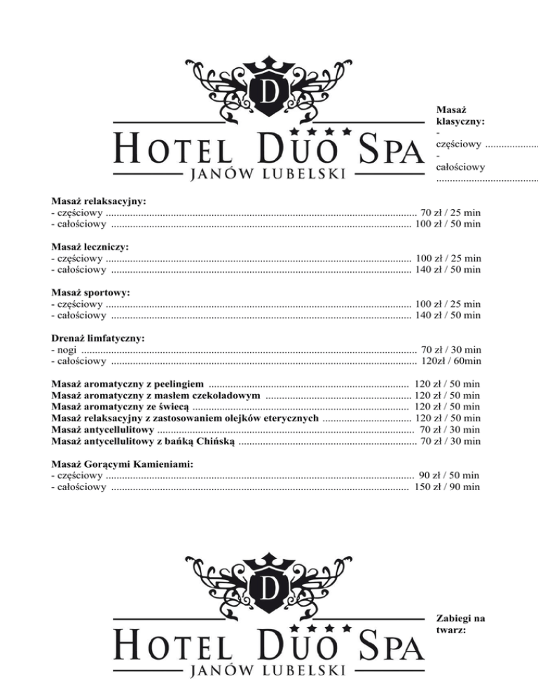 Masaż klasyczny: - częściowy .....................................