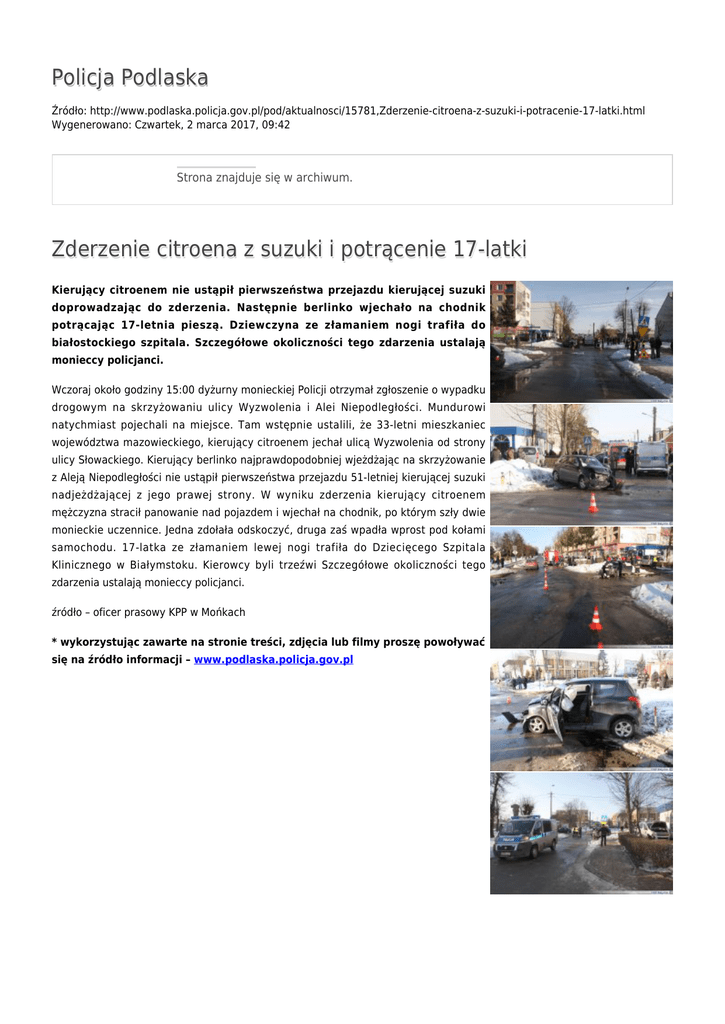 Policja Podlaska Zderzenie citroena z suzuki i potrącenie 17