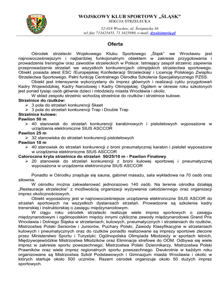 WOJSKOWY KLUB SPORTOWY „ŚLĄSK” Oferta