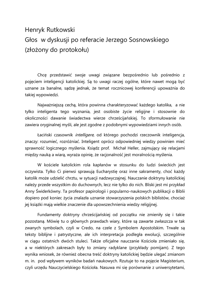 Henryk Rutkowski Głos w dyskusji po referacie Jerzego Sosnowskiego