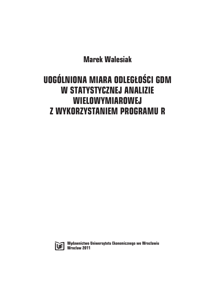 Walesiak M. (2011), Uogólniona miara odległości GDM w statystycznej analizie wielowymiarowej z wykorzystaniem programu R,