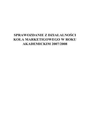 SPRAWOZDANIE Z DZIAŁALNOŚCI KOŁA MARKETIGOWEGO W ROKU AKADEMICKIM 2007/2008 ZAŁOŻENIA DZIAŁALNOŚCI KOŁA MARKETINGOWEGO Koło Marketingowe tworzy grupa osób aktywnych, zainteresowanych problematyką marketingu i pragnących rozwijać swoje umiejętności oraz pogłębiać Główne cele działalności Koła: poszerzanie wiedzy studentów w zakresie marketingu, spotkania ze specjalistami z dziedzin marketingu, doskonalenie zdolności pracy w zespole w trakcie realizacji projektów, organizowanie konferencji, seminariów i warsztatów, integracja studentów o wspólnych zainteresowaniach. wiedzę. DZIAŁALNOŚĆ KOŁA AKADEMICKIM 2007/2008 MARKETINGOWEGO W ROKU W pracach Koła Marketingowego w roku akademickim 2007/2008 uczestniczyło 6 osób, w przeważającej większości były to studentki trzeciego roku Wydziału Zarządzania. Spotkania Koła odbywały się raz w miesiącu i miały charakter dyskusyjno - warsztatowy. Poza spotkaniami studentki realizowały część praktyczną przygotowywanego przez Koło projektu badawczego. W roku akademickim 2007/2008 w ramach prac Koła Marketingowego wykonany został projekt badawczy zatytułowany „Zaistnieć na rynku pocztowym – stworzenie konkurencji dla Poczty Polskiej”. Realizowany projekt swoim zakresem obejmował zarówno tematykę marketingową, jak i tematykę zarządzania. Celem projektu było stworzenie profilu małej firmy, która mogłaby stanowić konkurencję dla Poczty Polskiej. W ramach projektu dokonana została analiza rynku pocztowego w Polsce ze szczególnym uwzględnieniem głównych konkurentów dla nowo tworzonej firmy. Pokrótce scharakteryzowani zostali dwaj prywatni operatorzy pocztowi: InPost sp. z o.o. i PAF Operator pocztowy sp. z o.o., a także firmy kurierskie. Więcej miejsca poświęcono na analizę sytuacji Poczty Polskiej – głównego konkurenta nowej firmy. Przeprowadzone badania ankietowe miały na celu określenie: - rozpoznawalności marek konkurencyjnych dla Poczty Polskiej przez konsumenta, - poziomu zadowolenia konsumentów z usług Poczty Polskiej, - przyczyn ewentualnego niezadowolenia z usług, - wizerunku Poczty Polskiej w oczach jej konsumentów. W dalszej części projektu przestawiony został profil nowej firmy: dokonano wyboru rynku geograficznego, scharakteryzowano segmenty docelowe, przestawiono ofertę firmy, a także określono wizualna stronę jej wizerunku (w szczególności logo). Projekt przygotowany przez Koło Marketingowe zawiera załącznik 1. ZAŁACZNIK 1 Kraków 2008 „KONKURENCJA NA RYNKU POCZTOWYM” - PROJEKT BADAWCZY DOTYCZĄCY STWORZENIA FIRMY KONKURUJĄCEJ Z POCZTĄ POLSKĄ Przygotowanie: Koło marketingowe 1. Wprowadzenie do projektu Celem niniejszej pracy jest próba stworzenia firmy konkurującej z monopolistą jakim jest Poczta Polska. Jako cele szczegółowe pracy wyróżniono: określenie segmentu działania nowopowstałej firmy, jej rynku geograficznego, zbudowanie oferty oraz wizerunku. Na podstawie projektu zostaną określone także cele strategiczne oraz plany rozwoju. Projekt został zrealizowany przez członków koła marketingowego pod przewodnictwem Pani mgr Joanny Brandys. W skład koła wchodziły: Lidia Biernacka Katarzyna Burkat Anna Chwaja Małgorzata Gwóźdź Gabriela Moskal Olga Strukowska-Kozień Przy realizacji projektu posłużono się badaniami ankietowymi (w celu analizy sytuacji głównego konkurenta nowopowstałej firmy – Poczty Polskiej), a także materiałami dotyczącymi analizy sytuacji innych konkurentów. Na podstawie charakterystyki konkurencji został opracowany profil firmy oraz jej wizerunek. Dodatkowo realizatorzy podjęli się próby utworzenia kultury organizacyjnej nowopowstałej firmy. 2. Analiza konkurencji U podstaw tworzenia firmy konkurującej powinna leżeć dokładna analiza rynku. W celu dobrego zaplanowania przyszłych działań należy poznać konkurencję, jej słabe strony. Na podstawie tej analizy należy wybrać odpowiednia grupę strategiczną oraz (o ile to możliwe) niszę rynkową w której zostanie usytuowana nasz działalność. Analiza konkurencji przyczyni się również do utworzenia najbardziej konkurencyjnej oferty. a. Główny konkurent - Poczta Polska Jako jeden z punktów wyjściowych projektu zbadana zostanie sytuacja Poczty Polskiej oraz problemy z jakimi ostatnio się boryka. Wykryte w analizie słabe strony Poczty mogą być bowiem potencjalną szansą dla działalności nowej firmy. Zaobserwowano, że Poczta Polska w ostatnim czasie stopniowo traci swoją pozycję na rynku, a jej wizerunek ulega ciągłemu pogorszeniu. 1) Możliwe przyczyny utraty pozycji na rynku przez Pocztę Polską to: - pojawienie się konkurencji (prywatni operatorzy krajowi: PAF, In Post, Deutshe Post, TNT), - brak rozwoju Poczty Polskiej (brak wykorzystania nowych technologii np. skanowanie listów, brak nowych kanałów dystrybucji), - problemy w strukturze wewnętrznej (strajki listonoszy), - nieodpowiednia polityka cenowa. W celu dokładnego zbadania przyczyn omawianego zjawiska zostały przeprowadzone badania. 2) Cel badań: Określenie czy utrata pozycji na rynku jest spowodowana brakiem rozwoju oraz pojawieniem się nowych konkurentów na rynku. 3) Opracowanie planu badań: A) Dla potwierdzenia słuszność (lub braku słuszności) hipotezy przeprowadzone zostaną badania, które pozwolą określić: a. Rozpoznawalność marek konkurencyjnych przez konsumenta, b. Poziom zadowolenia konsumentów z usług Poczty Polskiej, c. Przyczyny ewentualnego niezadowolenia z usług, d. Obraz Poczty Polskiej w oczach jej konsumentów. B) Źródłem danych będą przeprowadzone badania wśród konsumentów C) W badaniach zostaną wykorzystane dwie metody badawcze ankieta i wywiad. Badania ankietowe zostaną przeprowadzone na potencjalnych konsumentach indywidualnych. Natomiast wywiad dotyczyć będzie przedsiębiorców. Taki podział jest konieczny w celu dokonania dokładniejszej oceny. Konsumenci indywidualni mają, b