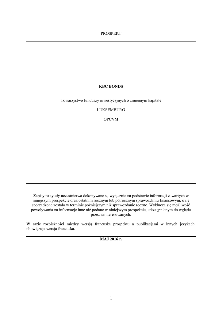 PROSPEKT KBC BONDS Towarzystwo funduszy inwestycyjnych o