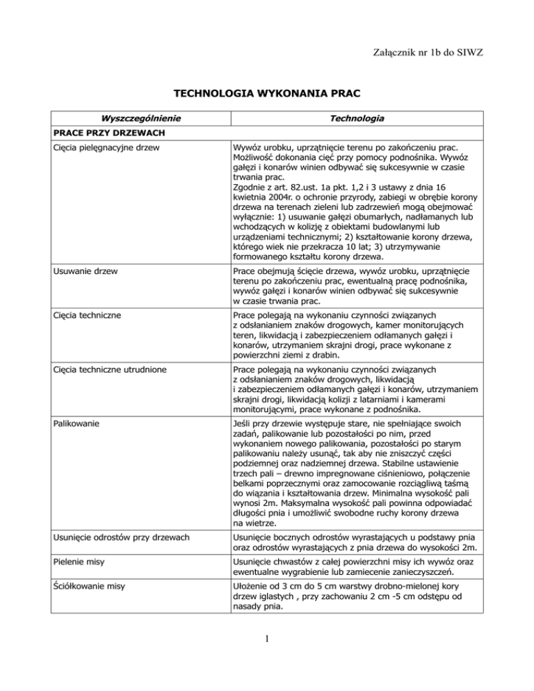 Załącznik nr 1b do SIWZ TECHNOLOGIA WYKONANIA PRAC 1