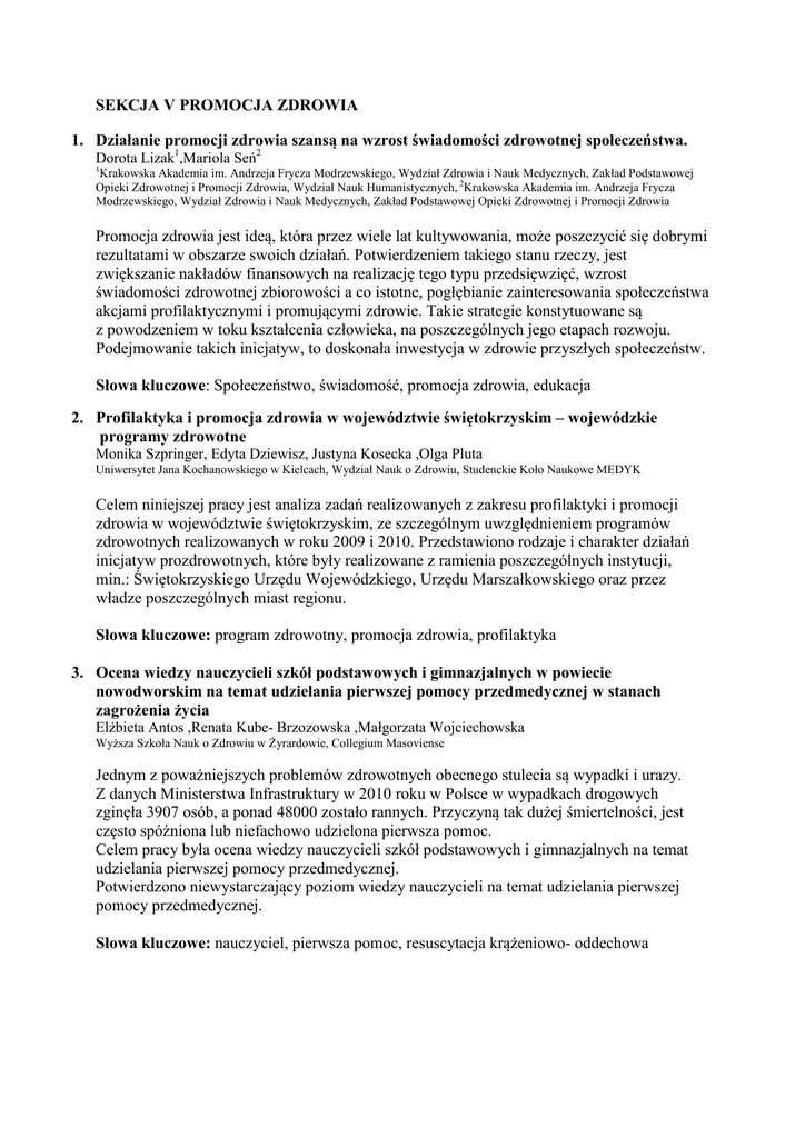 SEKCJA V PROMOCJA ZDROWIA streszczenie