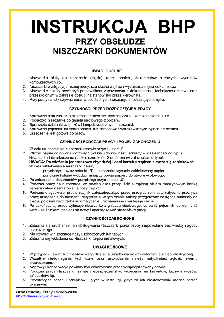 Instrukcja BHP przy obsłudze niszczarki dokumentów