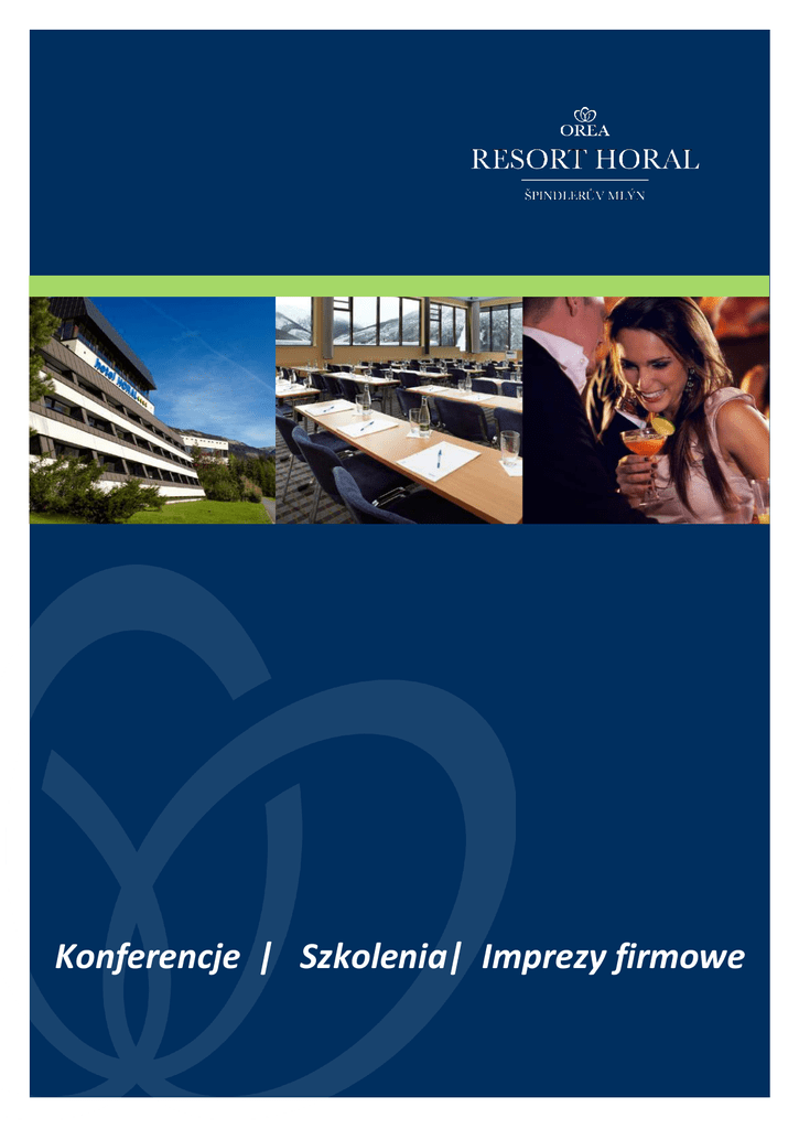 Konferencje | Szkolenia| Imprezy firmowe Hotel Kongresy Cennik Oferty promocyjne Fotogaleria Kontakty Orea Resort Horal**** Szpindlerowy Młyn – Karkonosze Położenie Kompleks Orea Resort Horal leży we wschodnich Czechach, w najwyższych w tym kraju górach - Karkonoszach, w najsłynniejszym ośrodku narciarskim, Szpindlerowym Młynie, na wysokości bezwzględnej 900 m n.p.m. U podnóża Kozich Grzbietów, w samym sercu Karkonoszy, leży Orea Resort Horal Špindlerův Mlýn. W odległości 15 minut pieszo znajduje się ośrodek narciarski Svatý Petr, zaś do oddalonego o 1,5 km centrum Szpindlerowego Młyna można bez problemu dostać się autobusem. Przystanek znajduje się dokładnie naprzeciwko hotelu. Noclegi Zapraszamy na urlop w jednym ze 164 komfortowych pokojów z dostępem do Wi-Fi. Wszystkie pokoje mają na wyposażeniu telewizję satelitarną, sejf, telefon, minibar i łazienkę z kabiną prysznicową lub wanną (tylko apartament i pokoje rodzinne), toaletą i suszarką. Noclegi: 14 dwuosobowych pokojów economy 112 dwuosobowych pokojów standard (45 pokojów z opcją 1 dostawki) 25 dwuosobowych pokojów superior (12 pokojów z opcją 1 dostawki) 5 pokojów rodzinnych 8 pokojów suite www.orearesorthoral.cz www.orea.cz Orea Resort Horal**** | Svatopetrská 280 | 543 51 Špindlerův Mlýn, Czechy tel: +420 499 433 351 | fax: +420 499 433 356| [email protected] Hotel Kongresy Cennik Oferty promocyjne Fotogaleria Kontakty Aktywny wypoczynek strefa spa – basen 6x12 m, jacuzzi, sauna, sauna parowa, solarium, siłownia, masaże (relaksacyjny, refleksologia, miodowy, czekoladowy), masaże dla dzieci (czekoladowy, miodowy, aromaterapia), floating, terapie z użyciem kamieni wulkanicznych, okłady borowinowe, zabiegi parafinowe, maseczki na twarz, zabiegi na dłonie, nogi lub plecy ścianka wspinaczkowa hala do tenisa i kort boisko uniwersalne (koszykówka, siatkówka, halowa piłka nożna, basket) rowery górskie wypożyczalnia sprzętu sportowego tenis stołowy kręgielnia bilard minigolf plac zabaw, trampolina na świeżym powietrzu wypożyczalnia nart Dodatkowe atrakcje przewodnicy, wycieczki fakultatywne organizacja programów kulturalnych – gra na bębnach (corporate drumming), chodzenie po rozżarzonych węglach... dyskoteka + karaoke od 9 000 CZK muzyka na żywo od 4 000 CZK sommelier + degustacja wina quady, hulajnogi, zjazdy na linie, jazda konna, loty tandemowe na paralotni trasa saneczkarska, skutery śnieżne, skijöring, snowbike, snowtubing www.orearesorthoral.cz www.orea.cz Orea Resort Horal**** | Svatopetrská 280 | 543 51 Špindlerův Mlýn, Czechy tel: +420 499 433 351 | fax: +420 499 433 356| [email protected] Hotel Kongresy Cennik Oferty promocyjne Fotogaleria Kontakty Kongresy & eventy Orea Resort Horal w Szpindlerowym Młynie to idealne miejsce na imprezę firmową lub konferencję, którą można połączyć z atrakcjami sportowymi i rekreacją. Dzięki swemu położeniu, wyposażeniu, dostępnym usługom i pomieszczeniom konferencyjnym nawet dla 300 osób jest to doskonałe miejsce na zorganizowanie każdej imprezy. Pomieszczenia konferencyjne Sala kongresowa - 300 miejsc (można ją podzielić na 3 oddzielne, mniejsze sale) Sala taneczna - 150 miejsc Sala Sněžka - 60 miejsc Sala Labe - 35 miejsc sala Bohemia - 35 miejsc Warianty układu miejsc w salach i szczegóły techniczne Nazwa pomieszczenia Układ teatralny Koktajlowy Układ szkolny Układ bankietowy Układ podkowa Sala kongresowa 300 260 200 150 70 Sala taneczna 150 130 100 70 50 Sala Sněžka 60 30 50 30 30 Sala Labe 35 20 25 20 20 Sala Bohemia 35 20 25 20 20 Nazwa pomieszczenia Wym. drzwi szer./wys. 1,5x2,1 (2x) 1,1x2,1 Światło dzienne Internet WiFi Materiał podłogowy tak tak wykładzina 2,7 3,2x2,0 nie tak parkiety 70 3,7 1,1x2,0 tak tak wykładzina 7 49 3,1 0,8x1,95 tak tak wykładzina 7 49 3,1 0,8x1,95 tak tak wykładzina Szer. m Dł. m Pow. m2 Wys. sufitu 11,8 17,1 220 4,0 Sala taneczna 11,5 14 161 Sala Sněžka 6,7 9,1 Sala Labe 7 Sala Bohemia 7 Sala kongresowa www.orearesorthoral.cz www.orea.cz Orea Resort Horal**** | Svatopetrská 280 | 543 51 Špindlerův Mlýn, Czechy tel: +420 499 433 351 | fax: +420 499 433 356| [email protected] Hotel Kongresy Cennik Oferty promocyjne Fotogaleria Kontakty Cennik Cennik najmu Nazwa pomieszczenia Cena za wynajem za 1 godz. Cena za wynajem za 1 dzień Sala kongresowa 4 000 CZK 30 000 CZK Sala taneczna 750 CZK 6 000 CZK Sala Sněžka 1 000 CZK 7 500 CZK Sala Labe 500 CZK 4 000 CZK Sala Bohemia 500 CZK 4 000 CZK * wynajem poszczególnych pomieszczeń z dostępem do internetu (WiFi) Reorganizacja sali kongresowej ................................................................................................................. 2 000 CZK www.orearesorthoral.cz www.orea.cz Orea Resort Horal**** | Svatopetrská 280 | 543 51 Špindlerův Mlýn, Czechy tel: +420 499 433 351 | fax: +420 499 433 356| [email protected] Hotel Kongresy Cennik Oferty promocyjne Fotogaleria Kontakty Cennik sprzętu konferencyjnego na 1 dzień Mikrofon bezprzewodowy ........................................................................................................................... 1 000 CZK Projektor danych - 2.400 ANSI (1 szt. w sali kongresowej) ......................................................................... 3 000 CZK Projektor danych - 2.000 ANSI (2 szt.) ....................................................................................................... 2 000 CZK Wizualizer XGA - AverMedia C3000........................................................................................................... 1 500 CZK Ekrany projekcyjne zabudowane 300 x 250 cm - 1 szt. (sala kongresowa) ....................................................................................................... 300 CZK 300 x 200 cm - 2 szt. (sala kongresowa) ....................................................................................................... 300 CZK 240 x 180 cm - 1 