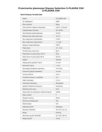 Przecinarka plazmowa Stamos Selection S-PLASMA 55H S