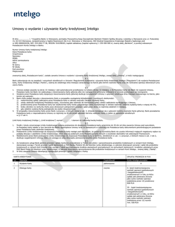 Wzór Umowy o wydanie i użytkowanie karty kredytowej Inteligo ze