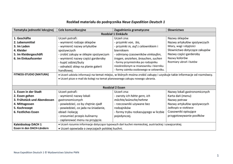 Rozkład materiału do podręcznika Neue Expedition Deutsch 1