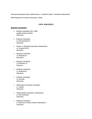 lista realizacji - PBM Południe SA