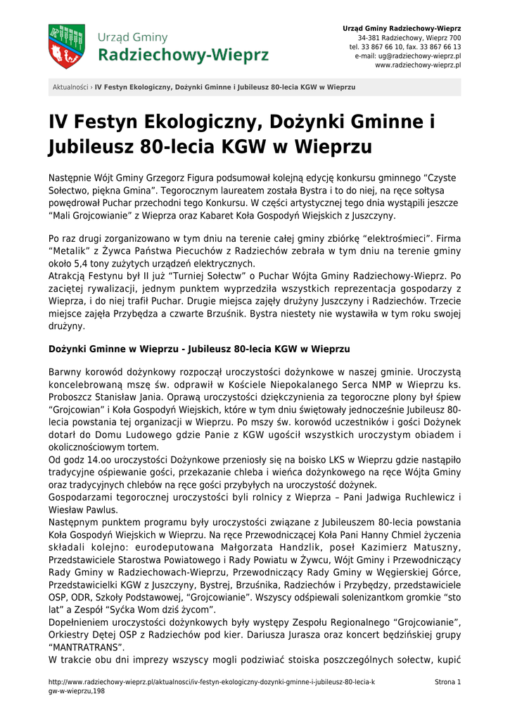 IV Festyn Ekologiczny, Dożynki Gminne i Jubileusz 80