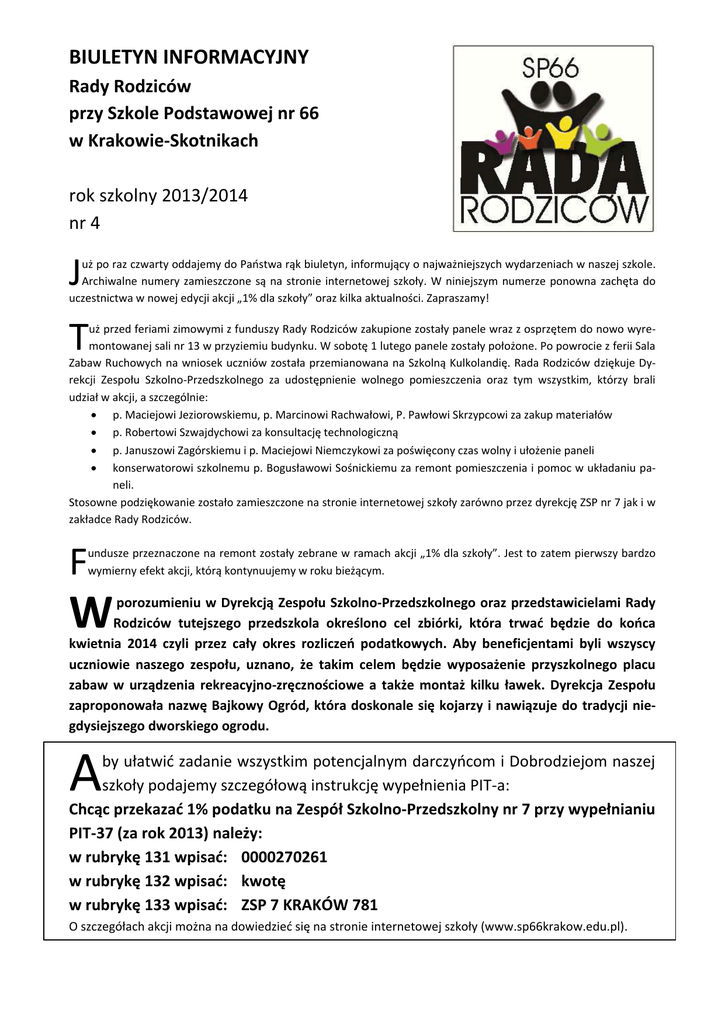 biuletyn informacyjny - Szkoła Podstawowa nr 66 w Krakowie