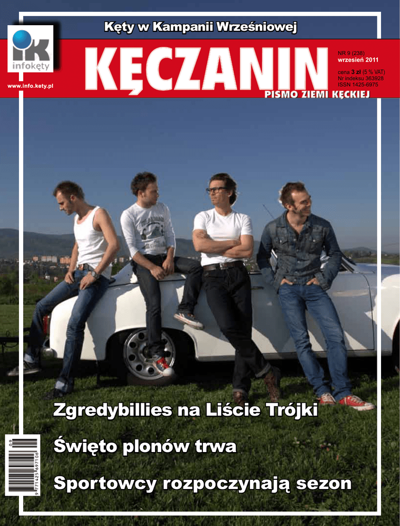 Kęty w Kampanii Wrześniowej NR 10 9 (238) (215) październik wrzesień 2011 2009 cena 2,50 3 zł (5zł% VAT) Nr indeksu 363928 ISSN 1425-6975 www.info.kety.pl Zgredybillies na Liście Trójki Święto plonów trwa Sportowcy rozpoczynają sezon info kęty Nowe Info Dokładnie 29 lipca oddaliśmy w Państwa ręce nową odsłonę portalu Info Kęty. Zmiany, chociaż przez wielu nielubiane, były koniczne, aby jeszcze lepiej, szybciej i skuteczniej informować naszych czytelników o tym, co dzieje się w gminie Kęty. Pośród nowinek przygotowaliśmy dla Pań- stwa kalendarz imprez i wydarzeń, korzystając z którego szybko dowiecie się gdzie i dlaczego warto być oraz wygodny i niemal niezawodny panel z prognozą pogody. Poza tym strona zyskała nowy „design” graficzny i została maksymalnie uproszczona tak, żeby internauci mogli łatwiej REKLAMA 2 KĘCZANIN nr 9, wrzesień 2011 się po niej poruszać. Nowa odsłona portalu wymagała przeniesienia całej bazy danych. Nieuniknione jest, że na Info Kęty występować będą drobne błędy. Będziemy więc wdzięczni za wszelkie uwagi i sugestie z Państwa strony. Zespół redakcyjny info kęty Rock żyje i ma się dobrze Tegoroczne wakacje kończymy w rytmach rockabilly, z wielkim zadowoleniem przyjmując informację, że bohaterowie „Tematu Miesiąca”, kęcko-bielskie „Zgredy”, trafili na listę przebojów radiowej „Trójki”. Sukces Zgredybillies jest nagrodą za wiele lat ciężkiej pracy, ale również dowodem na to, że wbrew pozorom bez koneksji, „pleców” i cyrkowych popisów w landrynkowych programach komercyjnej TV można coś jeszcze osiągnąć na polskim rynku muzycznym. Być może śladami Remigiusza Hadka i jego kolegów podążą uczestnicy Kęckich Nocy Rockowych, cieszących się niesłabnącą popularnością wśród miejscowej młodzieży. Bitwa na ciężkie brzmienia, na trzy tygodnie przed ostatecznym starciem, przeniosła się na dużą scenę a kęczanie co piątek skutecznie przeczą mansonowskiemu „Rock is dead”. Oby tak dalej. Karina Zoń OGŁOSZENIE PŁATNE Zdjęcie miesiąca Kęczanin – Pismo Ziemi Kęckiej Wydawca: Gmina Kęty Przemysław Więcek, Sławomir Kasiński, Dominik Królicki, Daria Chlebowska, Adres redakcji: Ogłoszenia i reklamy przyjmowane są codziennie w godzinach pracy redakcji oraz mailowo - [email protected]. Redakcja nie odpowiada za treść reklam i ogłoszeń. Niezamówionych materiałów nadesłanych do redakcji nie zwracamy. Redakcja zastrzega sobie prawo skracania nadesłanych materiałów. 32-650 Kęty, ul. Sobieskiego 19 Tel. 0.519 19 00 11, e-mail: [email protected] Redakcja czynna jest codziennie, od poniedziałku do piątku w godz. 7.30 - 15 Redaktor naczelny: Karina Zoń Redaktor techniczny: Grzegorz Kozioł Dziennikarz: Natalia Golaś Współpraca: Agata Szyszka-Mądro, Arkadiusz Raj, Andrzej Małysa, Urszula Baczyńska-Śleziak, Ewelina Saferna, Nakład 1400 egz. Druk: DTL Porąbka, ul. Chmielna 5, Tel. 0.33 810 60 38, e-mail: [email protected] KĘCZANIN nr 8, wrzesień 2011 3 temat miesiąca Zgredybillies na fali Warto czasami złapać dobrą falę i włączyć Program III Polskiego Radia, posłuchać wartościowej muzyki, a przy okazji natknąć się na utwór „Całe życie na kredycie”. Fani Trójki, szczególnie audycji Piotra Barona, pewnie słyszeli już kilka brzmień z płyty „Proszę Pani”, ale mało kto wie, że jest to krążek kęcko-bielskiej kapeli Zgredybillies. Czynnie uczestniczący w życiu kulturalnym miasta, mieli okazję zobaczyć grupę na żywo podczas tegorocznych Dni Kęt – zaledwie tydzień po wydaniu płyty. Wtedy jeszcze nikt się nie spodziewał, że zdobędzie ona taką popularność. - Materiał był gotowy już rok temu – mówi Remigiusz Hadka, gitarzysta i autor większości kompozycji. – Płytę nagraliśmy własnymi nakładami, we własnym studio i zaczęliśmy szukać sponsorów na jej wydanie. Nie było łatwo, ale udało się dzięki naszemu wokaliście – Albinowi (przyp. red. Andrzejowi Trojakowi). Po otrzymaniu gotowego krążka standardowo zapakowaliśmy go w koperty i posłaliśmy do największych rozgłośni radiowych. Nie liczyliśmy jednak na tak szybką reakcję. Już na dwa dni po wysłaniu płyty trafiła ona na antenę „Trójki”, a potem Polskiego Radia Program I. O piosenkach Zgredybillies pochlebnie zaczął wypowiadać się wspomniany już Piotr Baron. Stylizowany na lata 50-te krążek bardzo przypadł mu do gustu. Tak bardzo, że 19 sierpnia piosenka „Całe życie na kredycie” znalazła się w Propozycjach do Listy Przebojów Programu III Polskiego Radia. Grupie przyszło konkurować z takimi 4 gwiazdami jak Evanescence, Kasia Nosowska i Zakopower. - Już sam fakt, że płytą zainteresowały się „Jedynka” i „Trójka” Polskiego Radia, czyli ci, którzy znają się na rzeczy i wiedzą co to jest kawał dobrej pani”, bo Zgredybillies cały czas puszczają do nas ze sceny oko, sami bawią się znakomicie i rockabillową stylistyką i zabawnymi tekstami, nie każą się traktować poważnie, choć muzycznie płyta śmiertelnie poważnie i profesjo- muzyki, to dla nas wielkie osiągnięcie – mówi Remigiusz Hadka. – Lista „Trójki”, na antenie od niemal 30 lat, gdzie pojawiamy się nagle znikąd obok takich gwiazd… nie spodziewaliśmy się tego i to jest chyba najprzyjemniejsze. Skąd sukces piosenki „Całe życie na kredycie”? Członkowie zespołu żartują, że piosenka zyskała popularność, bo tematyka jest bardzo na czasie. nalnie jest zrealizowana. Piszę o tym wszystkim, bo aktualny radiowy sukces Zgredybillies nie jest dziełem przypadku, składają się nań lata pracy i doświadczeń pozwalających na takie właśnie z pozoru lekkie potraktowanie tematu, długi czas dojrzewania osobowości i wiele prób (…). To może nawet trochę zabawne, że dla tej szerokiej krajowej publiczności Zgredybillies brzmią zaskakująco świeżo i sprawiają w