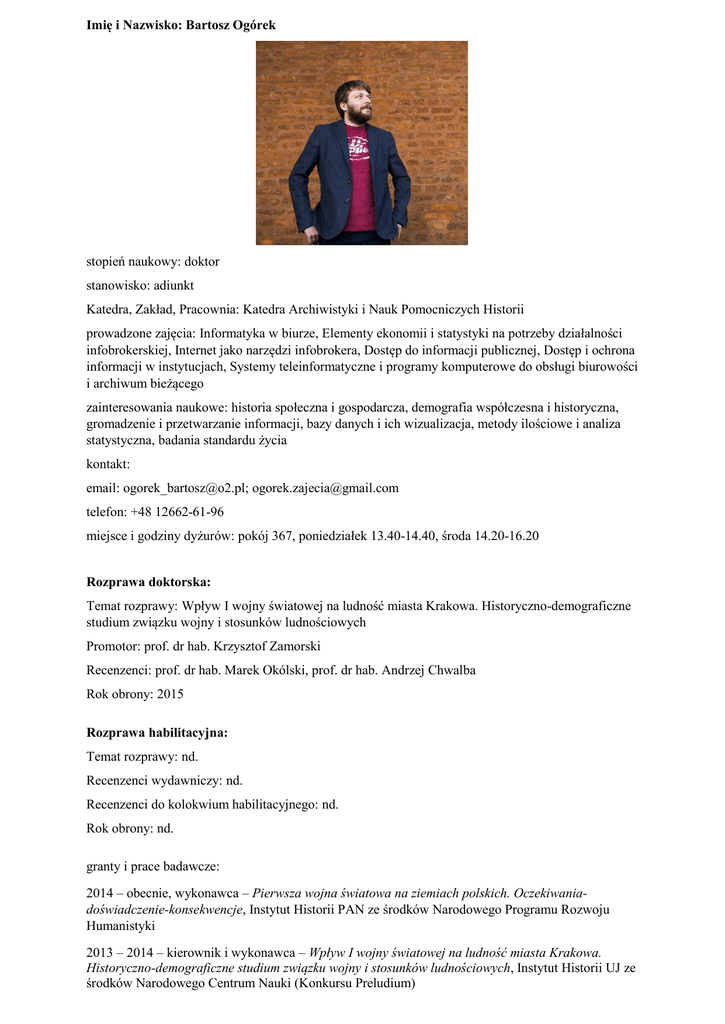 dr Bartosz Ogórek - Uniwersytet Pedagogiczny
