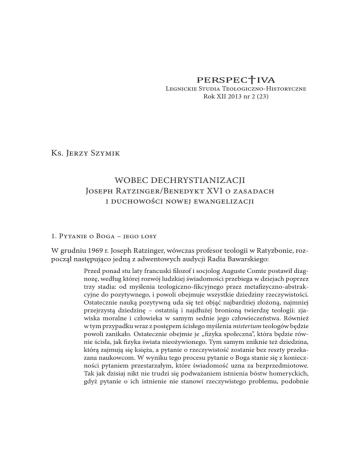 WOBEC DECHRYSTIANIZACJI Joseph Ratzinger