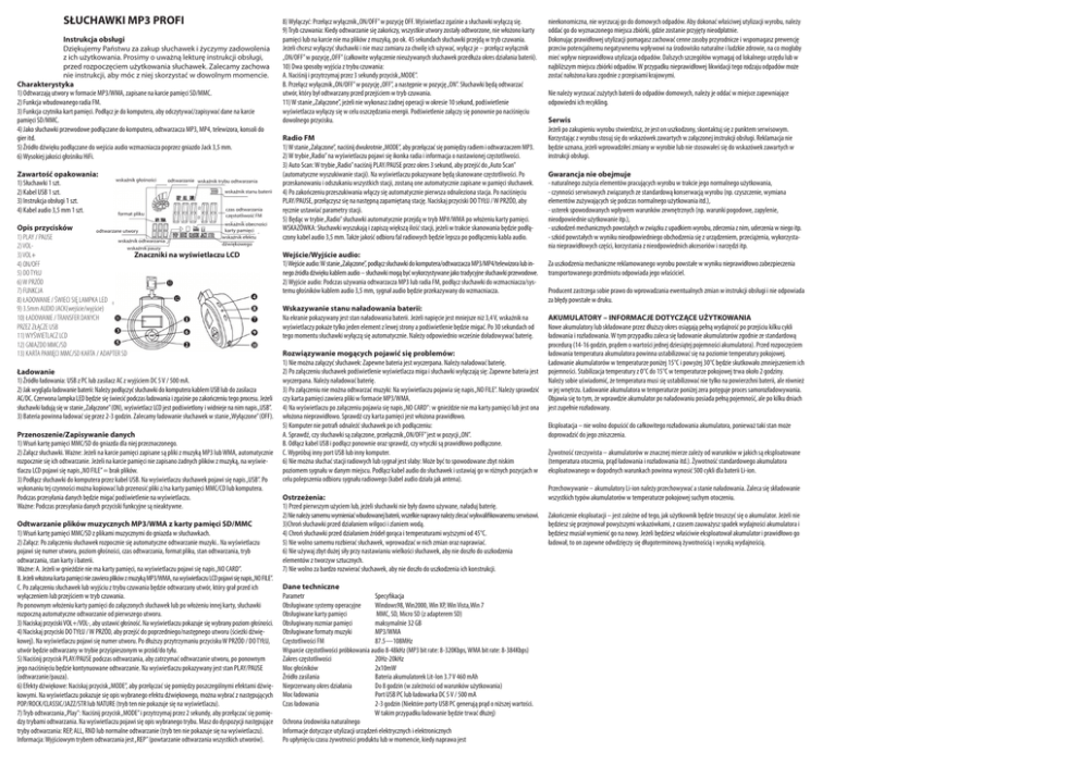 Instrukcja obsługi słuchawek MP3 Profi