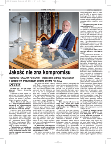a4322-23 rozycki legowicz.qxd 2014-10-17 22 18:03 Page 2 DOBRE, BO POLSKIE ANGORA nr 43 (26 X 2014) Jakość nie zna kompromisu Rozmowa z IGNACYM PETECKIM – właścicielem jednej z największych w Europie firm produkujących stolarkę okienną PVC i ALU – Zniknął pan z listy 100 najbogatszych Polaków tygodnika „Wprost”. – Obecność na liście „Wprost” nigdy nie była moim celem. Nie ma na niej wielu biznesmenów, którzy mogliby się tam znaleźć, i jest wielu, których nie powinno tam być. – Przed dziesięciu laty był pan na 57. miejscu z przychodami ocenianymi na 320 milionów złotych rocznie i majątkiem wartym 300 milionów. Teraz jest gorzej? – Jest dużo lepiej. Wówczas miałem dwa zakłady produkcyjne, dziś mam cztery. W Łodzi, Łasku, Gostyninie i Chrapczewie, w których w sezonie pracuje blisko 1000 osób, a powierzchnia hal produkcyjnych, biur i magazynów wynosi 5 hektarów. Robimy rocznie ponad 700 tysięcy jednostek okien i drzwi, ale obrotów ani zysków nie ujawnię. – Pańscy konkurenci zatrudniają do promocji światowe gwiazdy, chwalą się setkami milionów przychodów, wielkością opanowanego rynku. A pan? – A ja wolę mniej mówić, a więcej robić. Żaden znaczący producent nie jest w stanie wiarygodnie powiedzieć, jaki procent krajowego rynku opanował, bo nikt dokładnie nie wie, ile jest firm w naszej branży. Może dwa, a może trzy tysiące? Prócz pięciu największych graczy, do których i my się zaliczamy, jest bardzo wiele zakładów pracujących w garażach, często działających także w szarej strefie. Dlaczego nie reklamuję się tak jak konkurencja? Mógłbym powiedzieć, że dlatego, iż jestem na rynku już ponad 19 lat i najlepszą reklamą naszych okien jest ich jakość. To oczywiście prawda, ale główny powód jest taki, że prawie 80 proc. całej produkcji to eksport. Wysyłamy nasze okna właściwie do wszystkich krajów Unii. Prócz tego niewielkie partie sprzedajemy do USA i Kanady, a zdarzyło się nam realizować zamówienia m.in. z Wenezueli i Haiti. – W Niemczech, gdzie klient jest przywiązany przede wszystkim do niemieckiej marki, sprzedaje pan więcej okien niż w kraju. – Za granicą sprzedajemy okna pod własnym logo, ale niemiecki klient już nas zna i ma zaufanie do naszej jakości. Jednocześnie jesteśmy tańsi od tamtejszych producentów, gdyż w Polsce są niższe koszty pracy. Na Zachodzie mamy swoich przedstawicieli, którzy dysponują świetnym serwisem, i jesteśmy w stanie w cztery tygodnie od przyjęcia zamówienia zamontować gotowe okna nawet w Portugalii czy Norwegii. – Żeby rozwinąć tak szybko tak dużą firmę, musiał pan chyba wziąć spory kredyt albo mieć własny kapitał, a o to w 1995 roku nie było łatwo. – Wyczucie w biznesie odziedziczyłem po dziadku, który miał przed wojną w Wilnie dużą firmę. Gdy tylko nadarzyła się okazja, to znaczy od początków transformacji, zacząłem zajmować się handlem. W Niemczech kupowałem towary, których brakowało w kraju, a w państwach dawnego Związku Radzieckiego sprzedawałem to, co produkowały polskie fabryki. To były świetne czasy, nie tylko dlatego, że byłem dużo młodszy, ale dlatego, że w kraju panował entuzjazm. Ludziom chciało się pracować, wierzyli, że własną in- wencją mogą wiele zrobić, a ponieważ nie było tu jeszcze wielkich światowych firm, które z czasem zniszczyły tysiące małych polskich sklepów, więc w szybkim tempie powstawały rodzime majątki, a nawet fortuny. – Dlaczego zdecydował się pan na produkcję okien? – Kończyły się złote czasy handlu dla niewielkich przedsiębiorców. Jak mówiłem często jeździłem na Zachód, szczególnie do Niemiec. To, co tam od razu rzucało się w oczy, to nowe, lśniące czystością okna, gdy w Polsce nawet w nowych budynkach montowano wówczas okna rodem z PRL-u. Zaczynałem od dwudziestu kilku pracowników i wynajętej niewielkiej hali produkcyjnej. Dziś wiele z tamtych osób stanowi kadrę kierowniczą mojej firmy. – Co zdecydowało o tym, że odniósł pan sukces, a innym się nie udało? – Oczywiście miało znaczenie, że byłem jednym z pierwszych w branży, ale moim zdaniem najważniejsze było to, że od początku postawiłem na jakość produktu. Sukces nie byłby możliwy do osiągnięcia bez zaangażowania i pracy całego zespołu, który zawsze był dla mnie najważniejszy. Niektórzy pracownicy przychodzili do mnie z ogłoszeniami konkurencji, która oferowała tańsze okna, i namawiali do obniżenia cen kosztem jakości. Ale nie dałem się przekonać, bo jakość nie zna kompromisu. Uważałem i uważam, że gdy oferuje się produkt najwyższej jakości, to mimo różnych kolei losu, hossy i bessy firma zawsze utrzyma się na powierzchni. W połowie lat dziewięćdziesiątych producenci praktycznie nie zajmowali się montażem okien. My jako jedni z pierwszych w kraju stworzyliśmy własną sieć sprzedaży (dziś to kilkaset punktów sprzedaży w całej Europie), gdzie klient nie tylko mógł zamówić okna o dowolnym kształcie, ale ekipy montażowe od razu je zamontowały. Położyliśmy duży nacisk na profesjonalne szkolenia montażystów i dzięki temu serwis od początku był na najwyższym poziomie i tak jest do dziś. – Chociaż na pierwszy rzut oka większość okien wydaje się niemal identyczna, to w pańskiej branży właściwie wszystkie są produkowane na zamówienie. – Klient zamawia okno. Wybiera rozmiar, system, kolor, klamki i okucia oraz rodzaj szyby. Następnie technik dokonuje pomiarów w domu czy w mieszkaniu i już można przystąpić do produkcji. W przypadku typowych zamówień jesteśmy w stanie dostarczyć okno w kilka dni, gdy zlecenie jest wyjątkowe zarówno pod względem rozmiaru, a4322-23 rozycki legowicz.qxd 2014-10-17 18:03 Page 3 jak i kształtu, czasem zajmuje to około miesiąca. – Czy produkcja to nie za mocne słowo, bo przecież profile w pańskich o