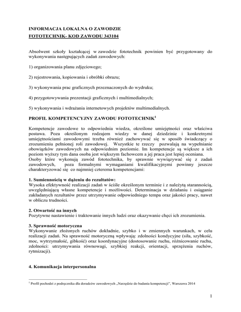 1 INFORMACJA LOKALNA O ZAWODZIE FOTOTECHNIK
