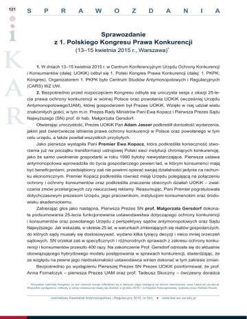 Sprawozdanie z 1. Polskiego Kongresu Prawa Konkurencji