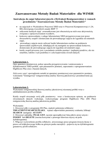Instrukcja do ćwiczeń z XRD (WIMIR)