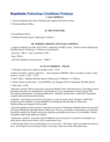 Regulamin triathlon - Urząd Miasta Wałcz