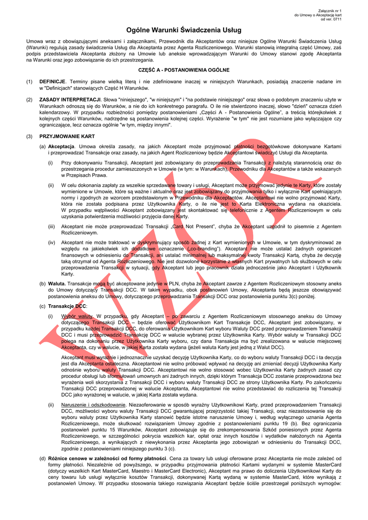 do Umowy dotyczący Transakcji DCC. W takim wypadku, obok postanowień Umowy, Akceptanta będą jeszcze obowiązywać