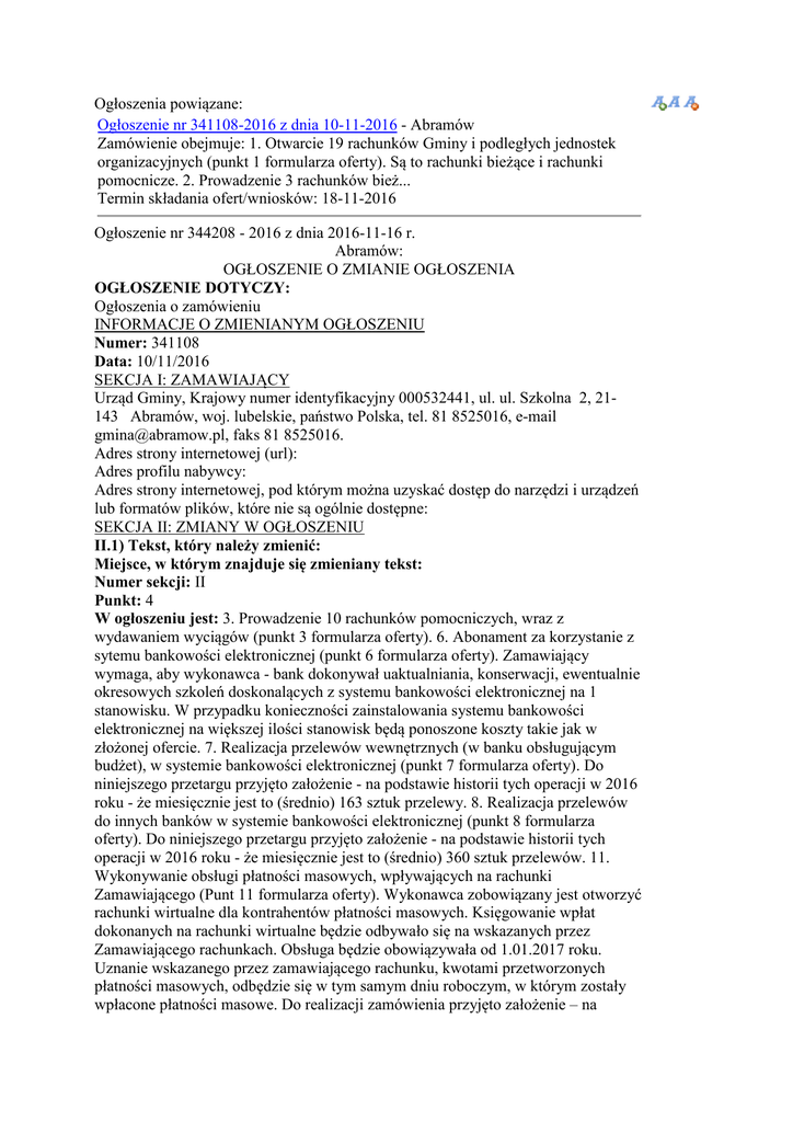 zmiana ogłoszenia - Urząd Gminy Abramów