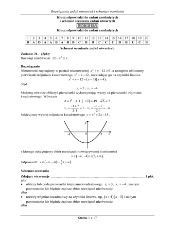 poprzestanie lub błędnie zapisze zbiór rozwiązań nierówności