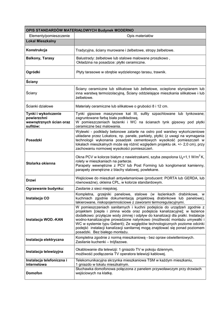 OPIS STANDARDÓW MATERIAŁOWYCH Budynek MODERNO