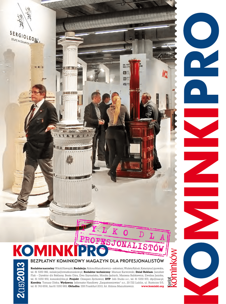 2(15)2013 BEZPŁATNY KOMINKOWY MAGAZYN DLA PROFESJONALISTÓW Redaktor naczelny: Witold Hawajski; Redakcja: Aldona Mazurkiewicz – sekretarz, Wioleta Rybak, Katarzyna Lipowska, tel. 81 5350 982, [email protected]; Redaktor techniczny: Mariusz Karwowski; Dział Reklam: Jarosław Flak – Dyrektor d/s Reklamy, Beata Góra, Ewa Szymańska, Monika Jędrych, Marzena Babkiewicz, Ewelina Janicka, tel. 81 5350 950, [email protected]; Projekt: Grzegorz Zychowicz; DTP: Info Studio s.c., tel. 81 5350 970, [email protected]; Korekta: Tomasz Górka; Wydawca: Informator Handlowy „Zaopatrzeniow iec” s.c., 20-722 Lublin, ul. Roztocze 5/5, tel. 81 743 6591, fax 81 5350 969; Okładka: ISH Frankfurt 2013, fot. Aldona Mazurkiewicz. www.kominki.org 2 / 13 KOMINKIPRO log Ostatni gasi światło Ludzie Gdy spojrzymy na demograficzne prognozy dla naszego kraju, to nic tam wesołego nie znajdziemy. Do roku 2035 liczba mieszkańców Polski zmniejszy się o co najmniej 2,2 mln. Największe spadki będą w województwie lubelskim (ubytek o 17%), świętokrzyskim (15%) i łódzkim (14%), a jedynie trzy województwa (mazowieckie, pomorskie i małopolskie) odnotują lekki przyrost ludności. Opustoszeją miasta wojewódzkie: Łódź straci niemal 160 tysięcy mieszkańców, a Kielce około 46 tysięcy. Największy ubytek nastąpi w latach 2024–2026, ale i do tego momentu każdy statystyczny powiat tracić będzie 500 osób co roku. W ciągu jednego pokolenia ubędzie nam statystycznie blisko 500 gmin, siedemdziesiąt powiatów i dwa województwa. Odwrócenie tego trendu jest już praktycznie niemożliwe, tym bardziej że Polska wciąż jest krajem emigracyjnym, a istotny ubytek ludności zacznie się jeszcze w tym dziesięcioleciu. Na dodatek odsetek ludzi w wieku produkcyjnym, czyli od 15 do 64 lat, będzie ciągle malał. Polska nie tylko się zmniejsza, ale i starzeje. Jeśli jest mniej ludzi, szczególnie w wieku produkcyjnym, to spadają podatki PIT, CIT i VAT, a koszty utrzymania infrastruktury (drogi, media) w przeliczeniu na jedną osobę znacząco wzrosną. Domy W całkiem dobrym roku 2008 inwestorzy indywidualni oddali do użytku 83,3 tys. mieszkań, rozpoczęli budowę 96,3 tys., a uzyskali pozwolenia na budowę 110,5 tys. mieszkań. W roku ubiegłym oddano do użytku 73,5 tys. mieszkań wybudowanych przez indywidualnych inwestorów, rozpoczęto budowę 90,5 tys. mieszkań i udzielono 96,4 tys. pozwoleń. W okresie dwóch pierwszych miesięcy 2013 wydano o 24,1% mniej pozwoleń niż rok wcześniej oraz o 27,3% zmniejszyła się ilość rozpoczętych budów. Kryzys gospodarczy, problemy z uzyskaniem zdolności kredytowej i otrzymaniem kredytu oraz wspomniany wyżej ubytek ludności to nie są czynniki sprzyjające budowaniu. Wbrew różnym obietnicom nie pojawiły się ani tanie tereny budowlane, ani znaczące uproszczenia biurokratyczne, zniknęły za to łatwe kredyty i preferencje dla młodych. Jednak biorąc pod uwagę prognozy demograficzne, wkrótce 4 może się okazać, że nowych domów wcale nam już nie będzie potrzeba – bo dla kogo? Kominki Przez kilka lat jakimś cudem udało się doczekać sytuacji, gdy większość inwestorów w budownictwie jednorodzinnym decydowała się na kominek. Był to „cud”, bo odbyło się to głównie na skutek „szeptanej propagandy”, a nawet wbrew prawu zabraniającemu traktować kominek jako główne ogrzewanie. Nie było też żadnych akcji propagujących kominki aranżowanych przez wspólnie działające firmy czy stowarzyszenia, a tak promuje się dzisiaj nawet jabłka, mleko i ryby. Jednak nic nie trwa wiecznie, i nawet „ciągły ogień” wymaga podsycania. Są więc już inwestorzy rezygnujący z kominka. O ile jednak 10 czy 15 lat temu ci, którzy rezygnowali z kominka, czynili to głównie z powodu nieświadomości, to aktualnie coraz częściej mamy do czynienia z osobami, dla których kominek wydaje się być zbędnym obciążeniem, tak w sensie zakupu, jak i późniejszej eksploatacji. Coraz droższe i trudne do pozyskania drewno kominkowe, wydajne i coraz bardziej przystępne cenowo konkurencyjne systemy grzewcze oraz aktualne i zapowiadane obniżki cen gazu, to najczęściej argumenty przeciw kominkom w domu. Jest w tym, niestety, sporo racji i kotły kondensacyjne, pompy ciepła różnego rodzaju, kolektory słoneczne urastają do alternatywy droższego kominka. Z kolei konkurentem dla tańszych rozwiązań kominkowych bywa ekogroszek, któremu chociaż daleko do „eko”, jest bezkonkurencyjny w zakupie i eksploatacji, jeśli chodzi tylko o ciepło. Wiele firm kominkowych preferowało promowanie kominka jako taniego źródła ciepła, zapominając o niewymiernych walorach zupełnie innego rodzaju i teraz mamy tego efekty. Przez kilka ostatnich lat wielu producentów i importerów w sposób niekontrolowany rozmnażało liczbę swoich przedstawicieli, aż ci zaczęli się wzajemnie wyniszczać, bo trudno utrzymać firmę i rodzinę z jednego kominka na miesiąc. Znaczna ilość firm kominkowych powstała w wyniku wsparcia finansowego urzędów pracy, a kilkanaście tysięcy dotacji miało zastąpić wiedzę, doświadczenie, a często i zdrowy rozsądek. Statystyki bezrobotnych spadły, ale ilość pożarów z powodu Witold Hawajski źle wykonanego kominka wzrosła. Wielu doświadczonych kominkarzy zamiast podwyższać poprzeczkę, schodzi „w dół” i zajmuje się sprzedażą i budową rozwiązań z najniższych półek, bo coraz trudniej poruszać się w świecie, gdzie głównym i jedynym atutem staje się niska cena. Internet z kolei podważył sens inwestowania w atrakcyjne lokale i kosztowną pracę nad klientem, który zadowala się i tak kliknięciem myszką, i niską ceną. Jednak są i zadowoleni kominkarze. Producentom i importerom w gruncie rzeczy nadal wszystko się zgadza w papierach, chociaż zamiast przez 20 zadowolonych i dobrze prosperujących przedstawicieli ich produkty są rozpowszechniane w 120 przypadkowych pu
