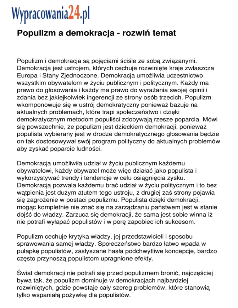 Populizm a demokracja - rozwiń temat