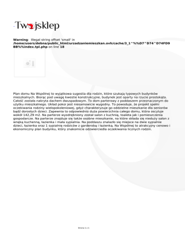 Warning: Illegal string offset 'small' in /home/users/debna/public_html/urzadzaniemieszkan.ovh/cache/3_1^%%D7^D74^D74FD9 BB%%index.tpl.php on line 18 Plan domu Na Wspólnej to wyjątkowa sugestia dla rodzin, które szukają typowych budynków mieszkalnych. Biorąc pod uwagę kwestie konstrukcyjne, budynek jest oparty na rzucie prostokąta. Całość została nakryta dachem dwuspadowym. To dom parterowy z poddaszem przeznaczonym do użytku mieszkalnego. Układ pokoi jest niesamowicie wygodny. To powoduje, że projekt spełni oczekiwania rodziny wielopokoleniowej, gdyż charakteryzuje go oddzielne mieszkanie dla seniorów bądź dorosłych dzieci. Zapewnia to odpowiednio duża powierzchnia całego domu, która oscyluje wokół 142,29 m2. Na parterze wyodrębniony został salon z kuchnią, toaleta jak i pomieszczenia gospodarcze. Na parterze znajduje się także osobne mieszkanie, na które składa się nieduży salon z wnęką kuchenną, łazienka i mała sypialnia. Na poddaszu znalazło się miejsce na dwie sypialnie dzieci, łazienka oraz 1 sypialnię rodziców z garderobą i łazienką. Na Wspólnej to atrakcyjny cenowo i ekonomiczny plan budynku, który znakomicie odzwierciedla oczekiwania licznych rodzin. Strona 1 z 1