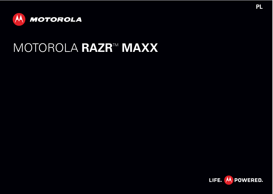 PL TM MOTOROLA RAZR MAXX GRATULACJE MOTOROLA RAZR™ MAXX Prezentacja wielofunkcyjnego paskiego telefonu RAZR! MOTOROLA RAZR MAXX posiada wiele zaawansowanych funkcji zaspakajajcych wszelkie potrzeby uytkowników, np. wywietlanie filmów, przegldanie Internetu, multimedia i inne. • Zawrotnie szybki procesor dual-core 1,2 GHz umoliwia szybkie pobieranie stron internetowych i wietnie radzi sobie z wielozadaniowoci. • Stosuj MotoCast do odtwarzanie strumieniowego lub pobierania muzyki, filmów i dokumentów do smartfonu oraz pobieraj zdjcia i pliki do komputera. • Uywaj 8 MP kamery do przechwytywania chwil z jakoci 1080p HD. Wywietlacz 4,3 cala qHD Super AMOLED Advanced sprawia, e filmy s wyraniejsze i maj bardziej ywe kolory ni kiedykolwiek. Uwaga: Pewne aplikacje i funkcje mog by niedostpne w niektórych krajach. Przestroga: Przed zoeniem, naadowaniem lub uyciem telefonu po raz pierwszy przeczytaj wane informacje dotyczce bezpieczestwa, norm i przepisów, które zostay do niego doczone. Niniejszy produkt spenia wymogi dotyczce limitu ekspozycji na fale radiowe (SAR, wspóczynnik absorpcji waciwej) wynoszcego 2,0 W/kg (ICNIRP). Ograniczenia i wytyczne charakteryzuj si znacznym marginesem bezpieczestwa, co ma zapewni bezpieczestwo wszystkich uytkowników, niezalenie od ich wieku i stanu zdrowia. Najwysze wartoci SAR zmierzone dla urzdzenia podano w informacjach odnonie przepisów, doczonych do produktu. Uwaga: Jeeli produkt jest przenoszony blisko ciaa, naley skorzysta z odpowiednich akcesoriów (np. futerau) lub trzyma urzdzenie w odlegoci 2,5 cm od ciaa, aby speni wymagania dotyczce wartoci SAR. Naley pamita, e produkt moe nadawa, nawet jeli nie trwa rozmowa. WICEJ • Odpowiedzi: Dotknij > Centrum pomocy. • Aktualizacje: aktualizacje telefonu, oprogramowanie komputera, instrukcje obsugi, pomoc online i wiele innych opcji na stronie internetowej www.motorola.com/myrazrmaxx. Moesz do nas zadzwoni w kwestiach gwarancji i wsparcia pod numer 0801620620 (Polska). • Akcesoria: Znajd akcesoria do Twojego telefonu na stronie internetowej www.motorola.com/products. Gratulacje 1 Informacje dodatkowe: • Wszystkie obrazy w niniejszym podrczniku s jedynie symulacj. Faktyczne obrazy mog si róni. • Instrukcje dotyczce wykonywania zada zawarte w tej instrukcji mog si zmienia zalenie od wersji oprogramowania smartfonu. • O ile nie zaznaczono inaczej, wszystkie instrukcje wykonywania zada zawarte w tej instrukcji zakadaj, e rozpoczynasz od ekranu gównego. TWÓJ SMARTFON Wane klawisze i zcza Złącze Micro USB 3,5 mm Złącze słuchawek Złącze Micro HDMI Przycisk zasilania 11:23 Kamera internetowa HD Arturo Roman JP Jordan Tatia Torrey Kim Vonesh Naciśnięcie = uśpienie Przytrzymanie = zasilanie Przyciski głośności http : / / www . Gniazdo Micro SIM Gniazdo microSD Menu Dom Telefon Poczta e-mail Przeglądarka Market Tekst Aparat Aplikacje 4.3" Super Zaawansowa ny ekran dotykowy AMOLED Szukanie Powrót Uwaga: Twój smartfon moe wyglda nieco inaczej. 2 Twój smartfon SPIS TRECI INFORMACJE WSTPNE INFORMACJE WSTPNE . . . . . . . . . . . . . . . . . . . . . . . . . . . . . . 3 EKRAN DOTYKOWY I PRZYCISKI . . . . . . . . . . . . . . . . . . . . . . 5 EKRAN GÓWNY . . . . . . . . . . . . . . . . . . . . . . . . . . . . . . . . . . . . . 7 APLIKACJE I AKTUALIZACJE. . . . . . . . . . . . . . . . . . . . . . . . . 10 ROZMOWY TELEFONICZNE . . . . . . . . . . . . . . . . . . . . . . . . . . 13 KONTAKTY . . . . . . . . . . . . . . . . . . . . . . . . . . . . . . . . . . . . . . . . . 16 WIADOMOCI . . . . . . . . . . . . . . . . . . . . . . . . . . . . . . . . . . . . . . . 19 WPROWADZANIE TEKSTU . . . . . . . . . . . . . . . . . . . . . . . . . . . 22 SIECI SPOECZNOCIOWE. . . . . . . . . . . . . . . . . . . . . . . . . . . 24 PORADY I WSKAZÓWKI . . . . . . . . . . . . . . . . . . . . . . . . . . . . . . 25 APLIKACJA WEBTOP . . . . . . . . . . . . . . . . . . . . . . . . . . . . . . . . 26 DIGITAL LIVING. . . . . . . . . . . . . . . . . . . . . . . . . . . . . . . . . . . . . . 27 ZDJCIA I FILMY. . . . . . . . . . . . . . . . . . . . . . . . . . . . . . . . . . . . . 28 MUZYKA . . . . . . . . . . . . . . . . . . . . . . . . . . . . . . . . . . . . . . . . . . . . 33 SIE. . . . . . . . . . . . . . . . . . . . . . . . . . . . . . . . . . . . . . . . . . . . . . . . 36 PERSONALIZACJA . . . . . . . . . . . . . . . . . . . . . . . . . . . . . . . . . . 38 POOENIE . . . . . . . . . . . . . . . . . . . . . . . . . . . . . . . . . . . . . . . . . 40 SIE BEZPRZEWODOWA . . . . . . . . . . . . . . . . . . . . . . . . . . . . 41 KARTA PAMICI I PRZESYANIE PLIKÓW. . . . . . . . . . . . . . 45 NARZDZIA . . . . . . . . . . . . . . . . . . . . . . . . . . . . . . . . . . . . . . . . . 46 ZARZDZANIE TELEFONEM . . . . . . . . . . . . . . . . . . . . . . . . . . 52 ZABEZPIECZENIA . . . . . . . . . . . . . . . . . . . . . . . . . . . . . . . . . . . 53 ROZWIZYWANIE PROBLEMÓW. . . . . . . . . . . . . . . . . . . . . . 55 INFORMACJE NA TEMAT BEZPIECZESTWA PRODUKTU, NORM I PRZEPISÓW . . . . . . . . . . . . . . . . . . . . . 56 przygotuj telefon do pracy ZOENIE I ADOWANIE 1 2 Włóż kartę micro SIM. W Uwaga: pociągnij pokrywę w dół, aby włożyć kartę micro SIM lub microSD. Włóż kartę microSD. W 3 N Naładuj. 5.5 H Uwaga: Ten produkt korzysta z wbudowanej baterii. Akumulator powinien by wymieniany wy cznie przez punkt serwisowy autoryzowany przez firm Motorola. Wszelkie próby wyjmowania lub wymiany akumulatora mog doprowadzi do uszkodzenia urzdzenia lub utraty gwarancji. Informacje wstpne 3 Wskazówka: W mao prawdopodobnym przypadku, w którym urzdzenie nie odpowiada, wypróbuj wymuszony restart — nacinij i przytrzymaj przez 10 sekund przycisk zasilania i przycisk ciszania. Uwaga: Smartfon obsuguje aplikacje i usugi przesyajce znaczne iloci danych, wic upewnij si, e korzystasz z planu taryfowego dostosowanego do swoich potrzeb. W razie potrzeby operator udzieli szczegóowych informacji. Wskazówka: Wydu